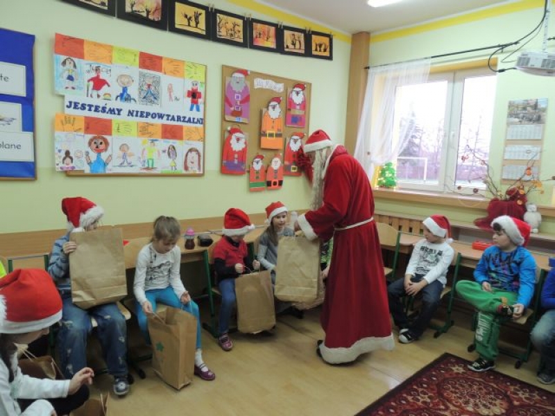 Dziś do naszej szkoły przybył długo oczekiwany gość – Święty Mikołaj. Dzień imienin Mikołaja, przypadający 6 grudnia jest okazją do wszelkiego rodzaju niespodzianek i obdarowania bliskich drobnymi prezentami. Z tej właśnie okazji, uczniowie klas drugich przygotowali wspaniały występ, w którym to przedstawili historię i tradycję świętowania Mikołajek w różnych częściach świata. Przedstawienie wzbogacił występ kółka teatralnego HAPPY KIDS, które zaśpiewało kolędę „Santa Claus Is coming to town”. Oczywiście w tym szczególnym dniu nie mogło zabraknąć prezentów i zabaw ze Świętym Mikołajem.