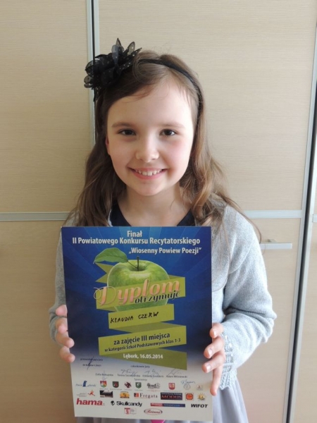 Naszą szkołę w tym konkursie reprezentowało dwoje uczniów. Z wielką przyjemnością informujemy, iż III miejsce w kategorii Szkół Podstawowych klas I-III zajęła KLAUDIA CZERW (kl.IIb). Wyróżnienie w kategorii Szkół Podstawowych klas IV-VI otrzymał NATAN ONASZ (kl.IV).
