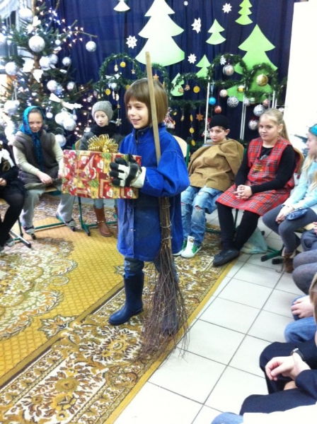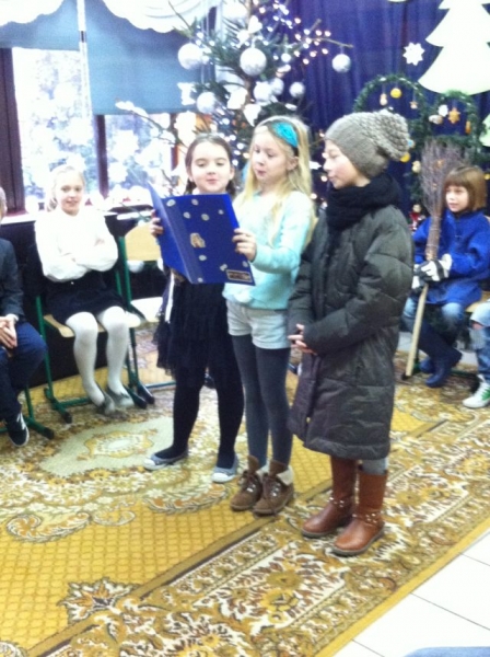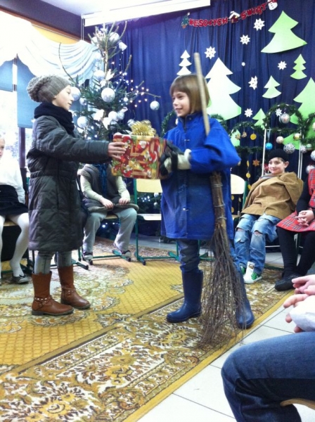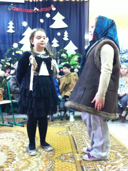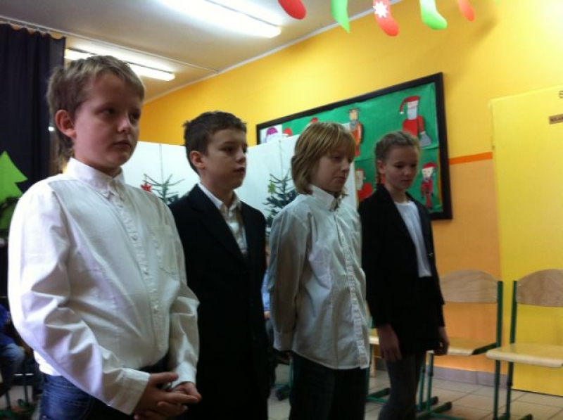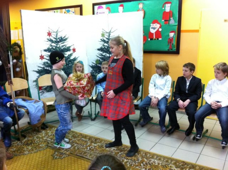 Z okazji zbliżających się Świąt Bożego Narodzenia, uczniowie klasy III przygotowali dla swoich rówieśników montaż teatralno – wokalny. Dzieci przedstawiały Jasełka pt. „Błękitny prezent”, w których zachęcały obecnych do okazywania sobie wzajemnej miłości i życzliwości. Spektakl poruszył wszystkie serca, dostarczając wspaniałych wrażeń. Świąteczną atmosferę podsycały kolędy śpiewane przez dzieci zarówno w języku polskim, jak i kaszubskim.