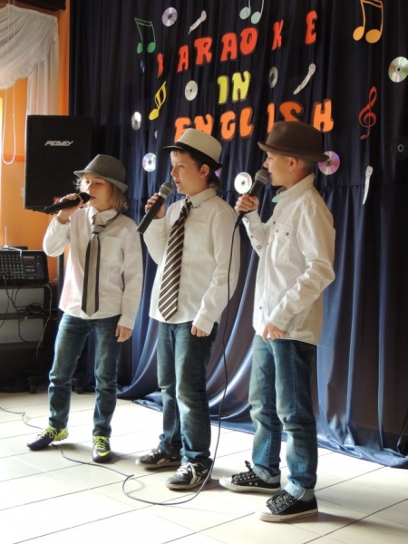 14 marca 2014r. uczniowie naszej szkoły uczestniczyli w Konkursie „Karaoke in english”. Dzieci wykonywały piosenki w języku angielskim. Jury brało pod uwagę następujące kryteria: wymowa w języku angielskim, charakteryzacja oraz ogólne wrażenie. W konkursie śpiewali soliści, jak również zaprezentowały się zespoły. Wszyscy wykazali się talentem wokalnym i dobrą znajomością języka angielskiego. Wyniki prezentują się następująco: