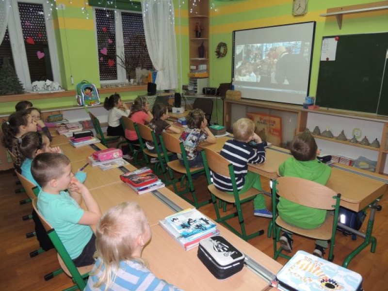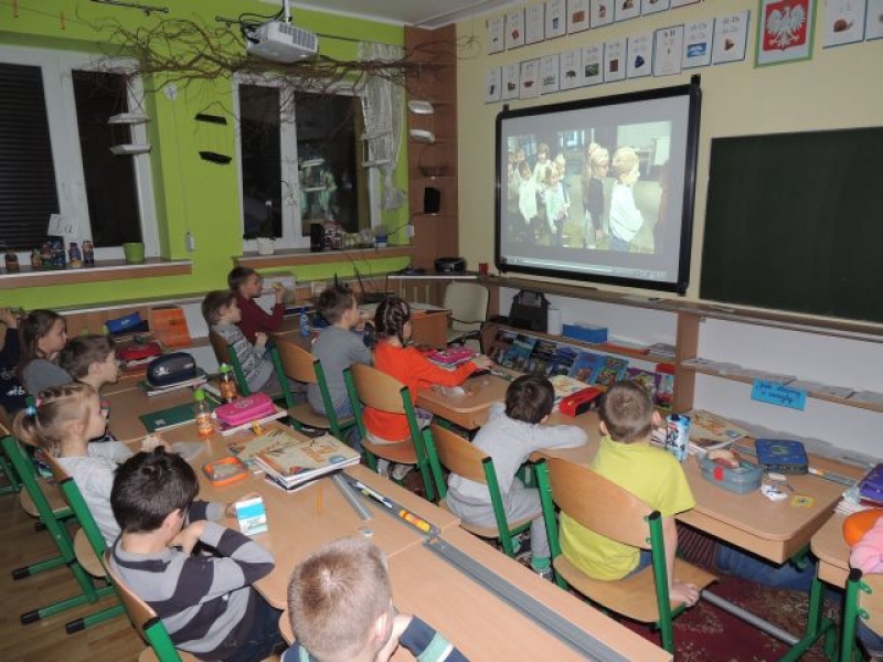 W dniu dzisiejszym uczniowie klas I i II gościli na deskach Teatru Lalek w Białymstoku poprzez internetowe łącze za pośrednictwem Telewizji Polskiej. Przedstawienie nosiło tytuł „Szpak Fryderyk”. Była to zabawna historia o szpakach i sympatycznych gryzoniach, która uczy, że niczego, ani nikogo nie należy oceniać po pozorach. Dzięki tej opowieści, wszystkie sąsiedzkie niesnaski przerodziły się w przyjaźń, a nawet w coś więcej. Dzieciom spektakl podobał się bardzo, a zadowolone miny świadczą o tym, że warto fundować im taki dobry kawałek kultury.