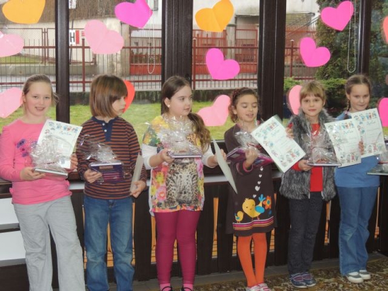 18.02.2014r. w naszej szkole został zorganizowany konkurs Mistrz ortografii dla klas II-III. Składał się on z dwóch części: I - pisanie ze słuchu, II- uzupełnianie wyrazów brakującymi literami z trudnością ortograficzną typu: u-ó, ż-rz, h-ch. Dodatkowo kl.II musiały wytłumaczyć pisownię danych wyrazów. W związku z tym, że w konkursie udział wzięli zarówno uczniowie klas II i III, stopień trudności zadań był dostosowany do poziomów edukacyjnych. Wyniki prezentują się następująco: