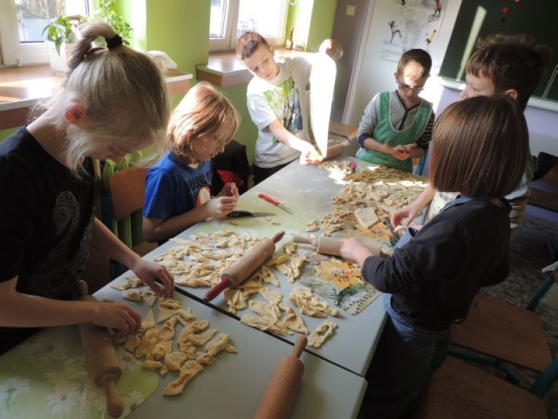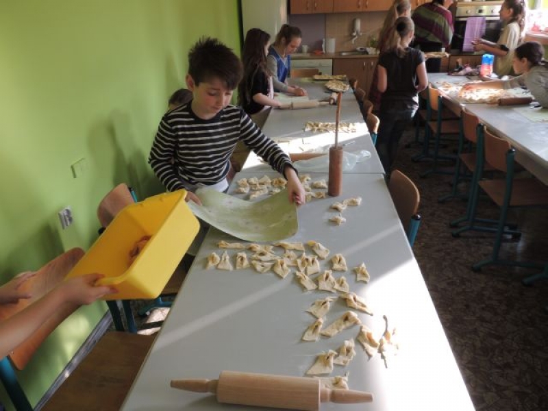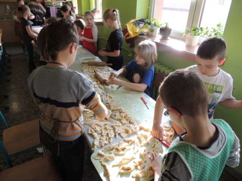 Z tej właśnie okazji uczniowie klasy III przygotowali dla wszystkich miłą i bardzo słodką niespodziankę. Od samego rana, ciężko pracując w kuchni, smażyli przepyszne faworki. Potem poczęstowali zarówno uczniów, jaki i pracowników naszej szkoły. Ponadto każdy z nas zajadał się smacznymi pączkami.