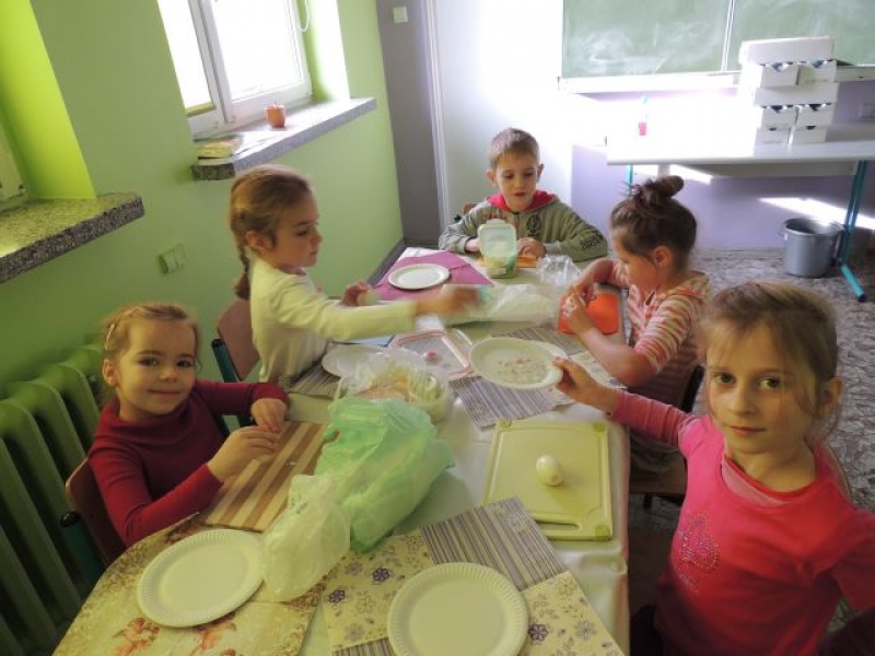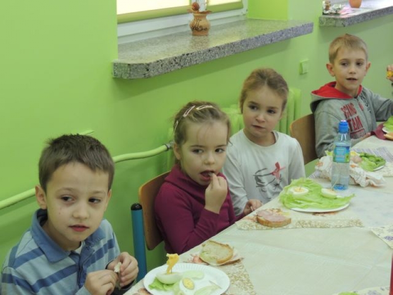 Na zajęciach kulinarnych w dniu 4 listopada 2013r. uczniowie klasy Ib przygotowali zdrową potrawę z jajek. Dzieci wykonały jajeczne żaglówki i umieściły je na falach z sałaty. Taki posiłek zachecał do spożywania zdrowych produktów, więc dzieci ze smakiem zjadły to, co przygotowały. Zajęcia te były okazją do utrwalenia dobrych nawyków żywieniowych.