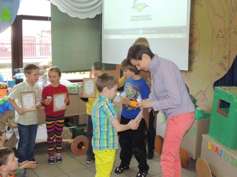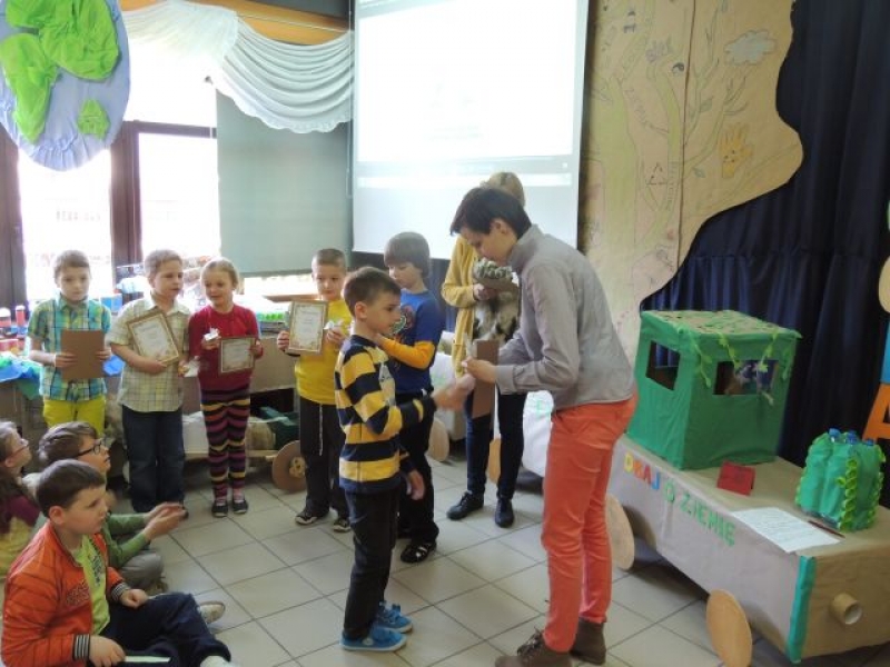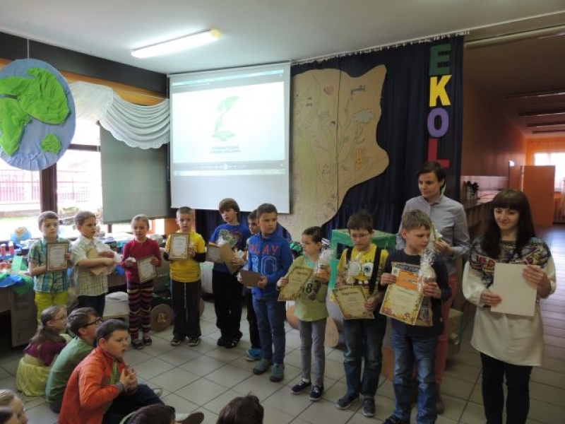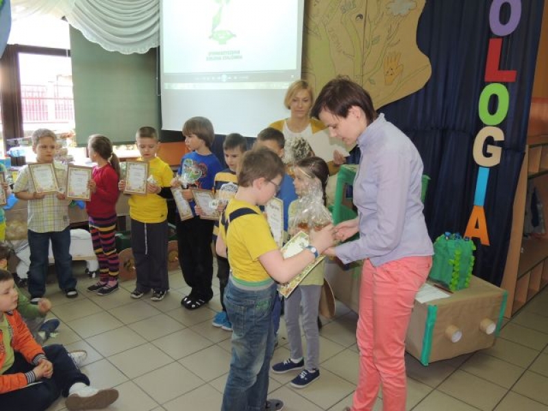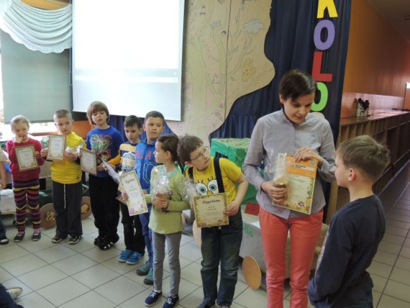 Wszyscy uczestnicy konkursu otrzymali podziękowanie i eko świeczkę. Laureaci konkursu otrzymali słoik miodu wraz z ekologiczną łyżeczką, natomiast zwycięzca otrzymał dodatkowo bon na zakup obuwia zdrowotnego, zafundowanego przez firmę be!Eko. Serdecznie dziękujemy sponsorom – Pani Magdalenie Sarzyńskiej – Górskiej z salonu be!Eko oraz Pani Agacie Dorywalskiej z „Artrecykling” za pomoc w przygotowaniu przedsięwzięcia.