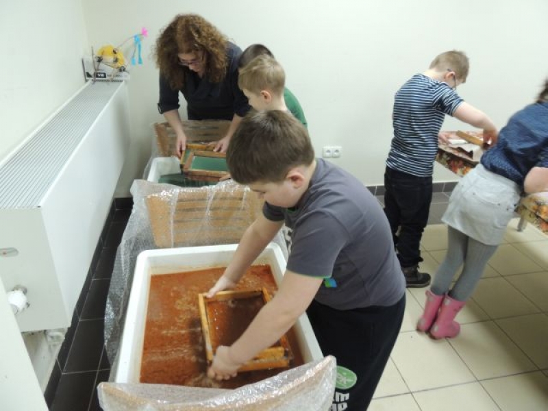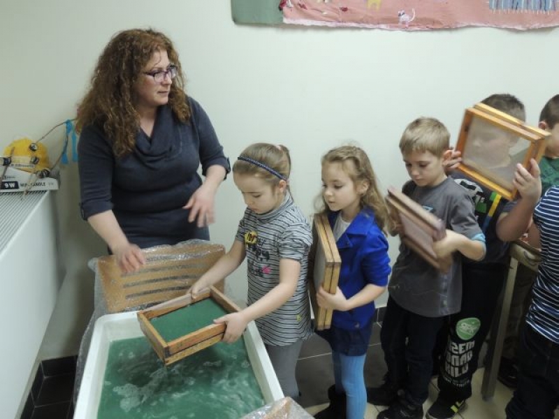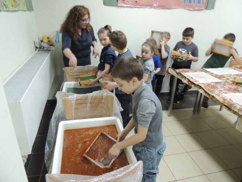 20 lutego 2014r. w Muzeum Miejskim w Lęborku odbyły się ciekawe zajęcia plastyczne dla pierwszoklasistów. Były to warsztaty poświęcone ręcznemu czerpaniu papieru. Dzieci z wielkim zaangażowaniem wykonywały swój własny, ozdobny papier. Trzeba przyznać, że pierwszoklasiści wykazali się dużą pomysłowością i kreatywnością w komponowaniu swoich papierowych ,,obrazków. Ich dzieła już wkrótce będzie można podziwiać na wystawie powarsztatowej w naszej szkole.