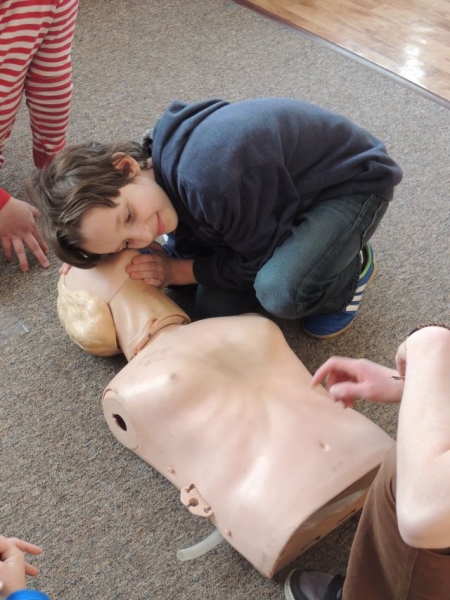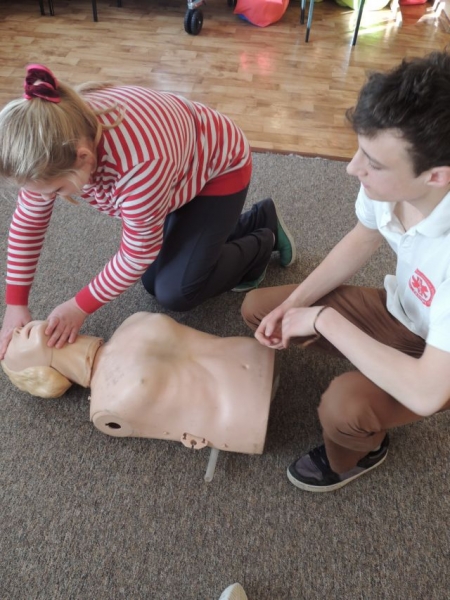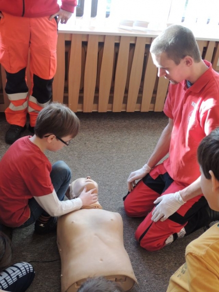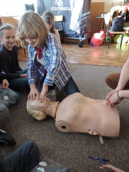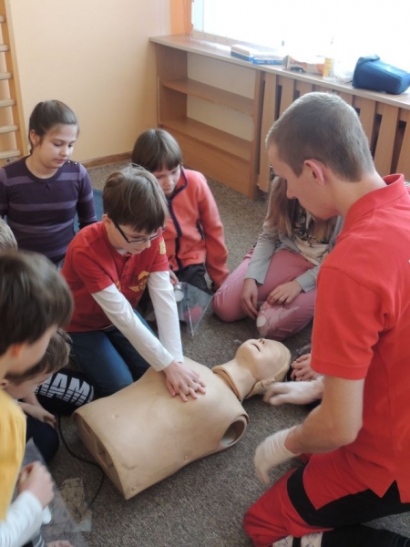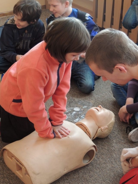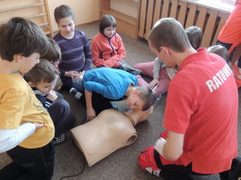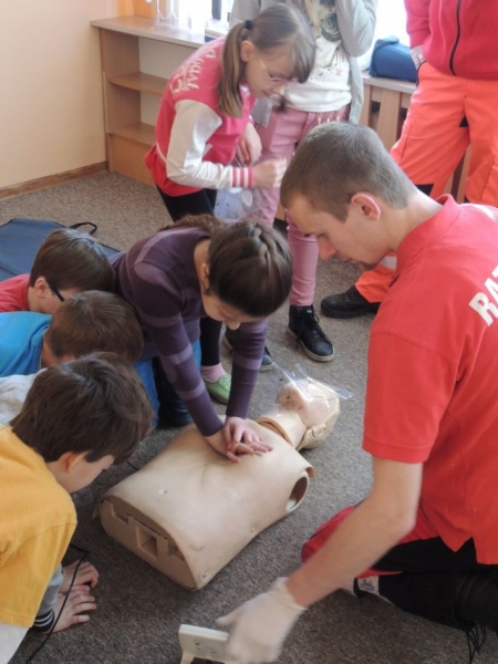10.02.2014r. uczniowie klasy IV uczestniczyli w warsztatach z pierwszej pomocy. Warsztaty prowadzone były przez ratowników z Ochotniczej Służby Ratunkowej w Lęborku. Zajęcia odbyły się w ramach lekcji przyrody, gdzie realizowane są tematy Moje zdrowie i bezpieczeństwo. Uczniowie dowiedzieli się, jak zachować się w sytuacji zagrożenia zdrowia lub życia oraz jak prawidłowo wezwać pomoc medyczną. Spotkanie zawierało także elementy praktyczne: uczniowie mogli samodzielnie na manekinach wykonać RKO (resuscytacji krążeniowo-oddechowej). Zajęcia wzbudziły wśród dzieci duże zainteresowanie.