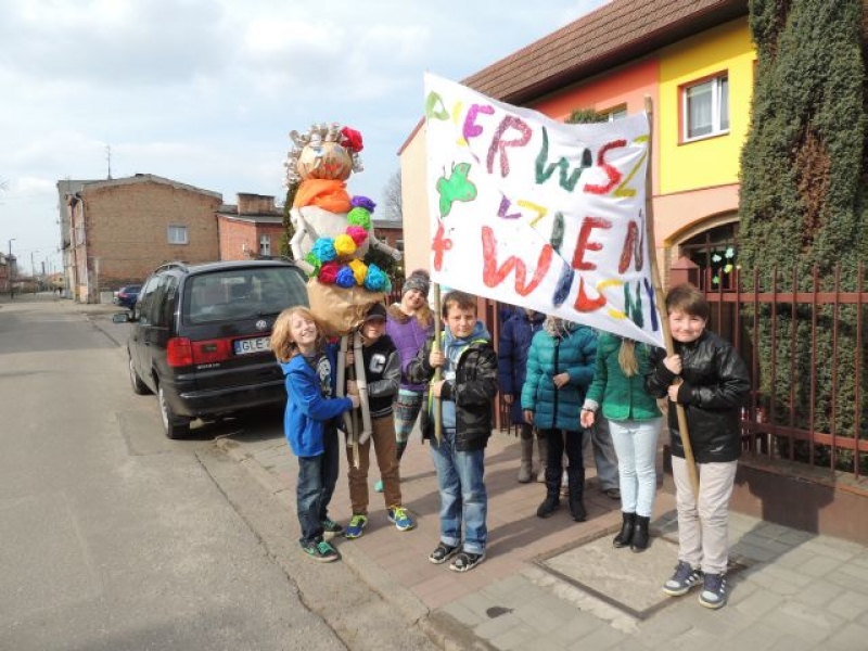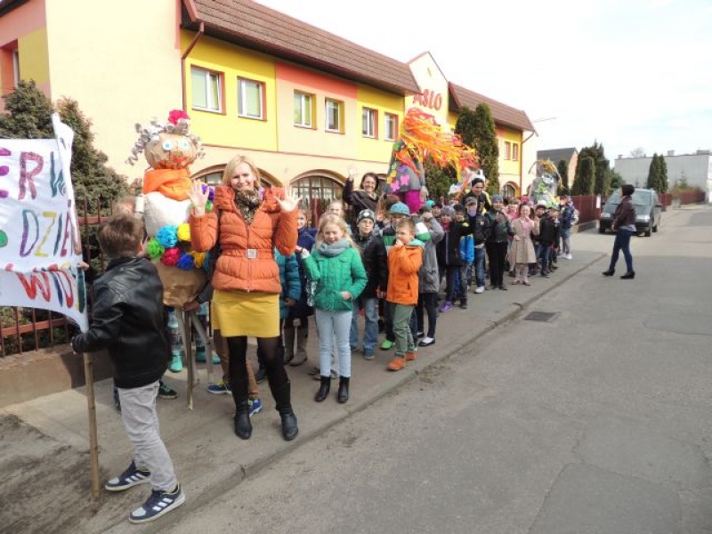 Dzisiaj dzieci przyszły do szkoły we wspaniałych strojach, by uczestniczyć w „Wiosennym Pokazie Mody”. Stroje były niezwykle kreatywne i wielobarwne. Uczniowie również brali udział w konkursie na „Wiosenną Fryzurę”. Oczywiście najważniejszym i najbardziej oczekiwanym momentem dzisiejszego dnia było uroczyste pożegnanie zimy i przywitanie kolorowej i ciepłej wiosny. Uczniowie z klas I-III gwarnie wybrali się na ul. Staromiejską, by do rzeki Łeby wrzucić wspaniałe Marzanny.