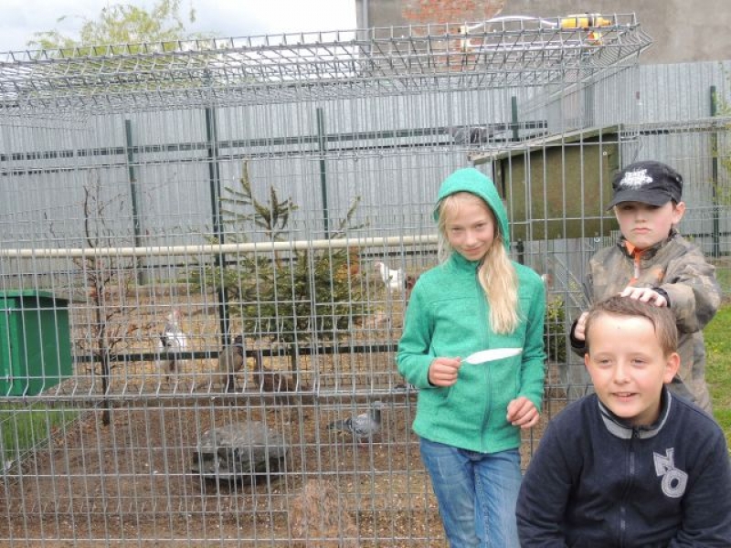 Dnia 7 maja 2014r. przedstawiciele klasy III i IV wraz z samorządem i opiekunami odwiedzili schronisko dla zwierząt w Małoszycach. Dzieci przekazały zebrane produkty i rzeczy opiekunowi schroniska. Uczniowie mieli możliwość zobaczenia wybiegów i pomieszczeń, w których przebywają zwierzęta. Podczas pobytu w schronisku naszych uczniów spotkała miła niespodzianka - uczennica klasy III, Iga Dramczyk, miała okazję karmić bociana z bliskiej odległości. Bocian został uratowany i przygarnięty przez właścicieli schroniska.