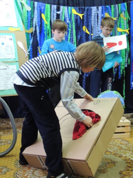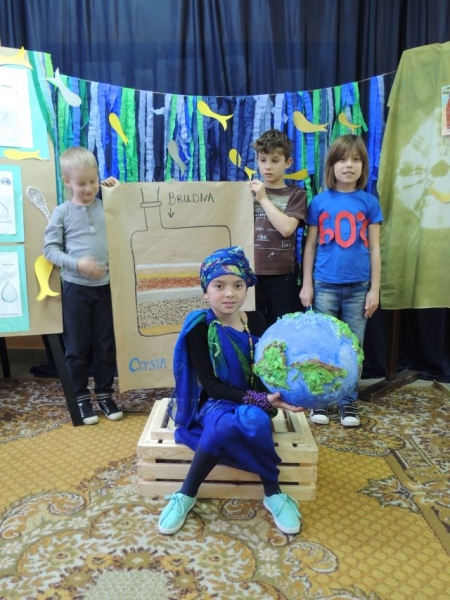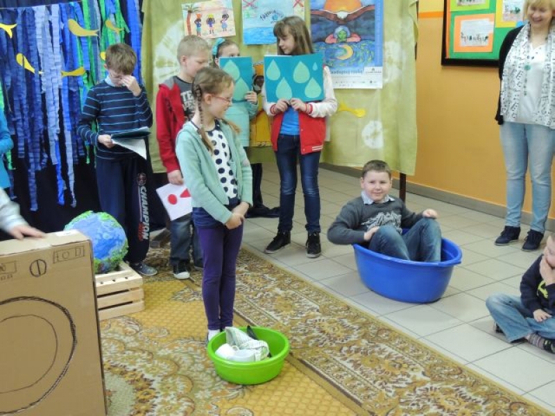 Dnia 25.03.2014r. Koło Przyrodnicze Mrowisko wraz z uczniami klasy IV zaprezentowało przedstawienie Woda - nasz skarb. Uczniowie podczas krótkich scenek poruszyli ważny dla świata problem wyczerpujących się zasobów wody pitnej. Przedstawienie opowiadało o niezwykle ważnej roli wody w życiu człowieka. Poruszało zagadnienia związane z ciężką sytuacją ludzi żyjących w krajach Afryki i Azji, a także wskazało sposoby oszczędnego i racjonalnego korzystania z wody.