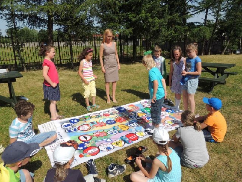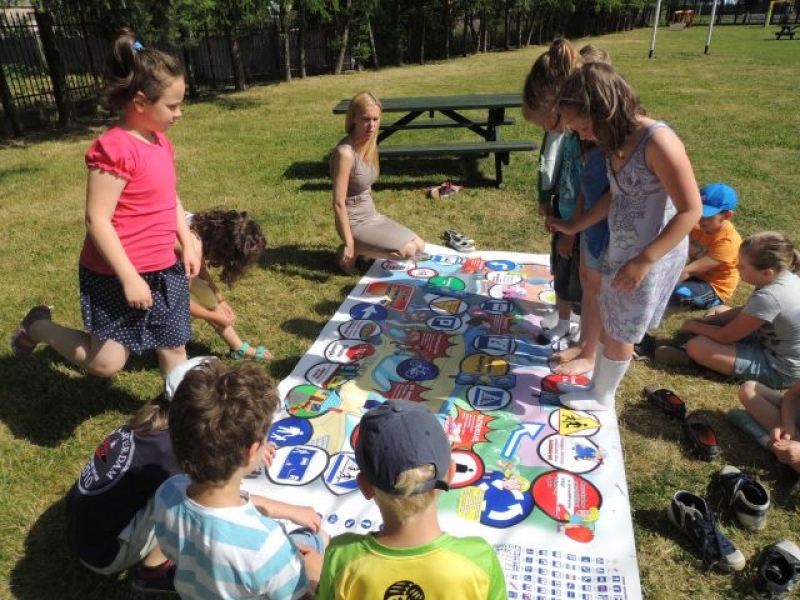 Dnia 11 czerwca 2014r. uczniowie klasy IIa uczestniczyli w zajęciach z pedagogiem, które miały na celu utrwalenie wiedzy na temat bezpiecznego poruszania się na terenie szkoły i poza nią. Dzieci bawiąc się, uczyły jak należy zachowywać się na jezdni, w jakich miejscach należy przechodzić przez ulicę oraz kiedy trzeba zachować szczególną ostrożność. Podczas zabawy utrwalały znaki drogowe. W drugiej części zajęć, uczniowie mieli okazje zapoznać się z metodami rozładowywania negatywnych emocji. Zajęcia miały również charakter scalający klasę i pracę zespołową.