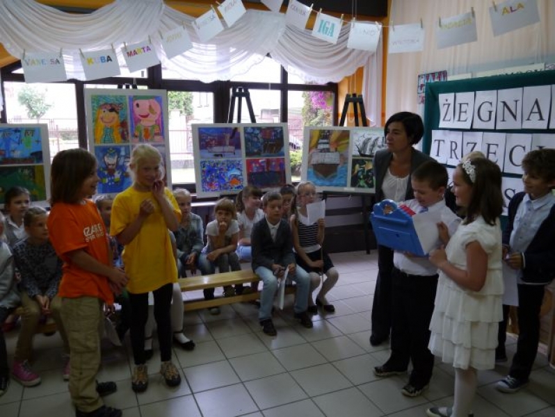 Dzisiaj w bardzo uroczystej atmosferze odbyło się pożegnanie uczniów klasy III, którzy ukończyli I etap edukacyjny. Klasy drugie przygotowały krótkie przedstawienie, w którym to trzecioklasiści musieli wziąć aktywnie udział. Oczywiście nie mogło zabraknąć konkursów, dzięki którym wszyscy sprawdzili i ocenili, czy uczniowie są gotowi ruszyć w dalszą drogę. Klasa trzecia wraz z wychowawcą – p. Alicją Preczewską, otrzymała wspaniały prezent – album ze swoimi zdjęciami z okresu trzyletniej edukacji wczesnoszkolnej.