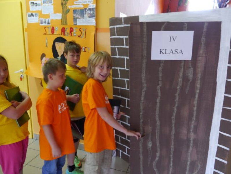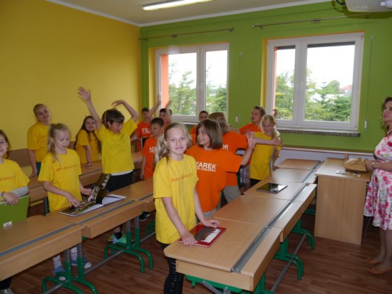 Uczniowie wraz z wychowawcą poszli zobaczyć swoją nową klasę, w której już we wrześniu rozpoczną naukę.
