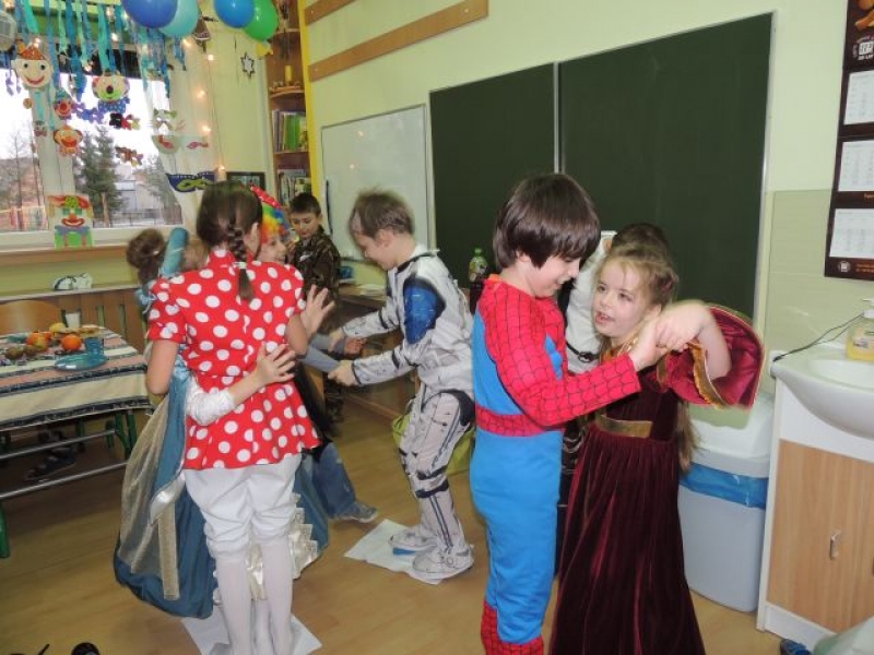 9 stycznia 2015r. w naszej szkole odbyła się zabawa karnawałowa. Kolorowe stroje, maski i skoczna muzyka tworzyły atmosferę dla dobrej zabawy. W szkole pojawiły się księżniczki, damy, piraci oraz rycerze. Przebrania dzieci budziły podziw, a niekiedy nawet lekkie przerażenie. Humor dopisywał wszystkim uczestnikom balu. Były korowody, kółeczka i tańce w parach. Oczywiście nie mogło zabraknąć różnych konkursów, takich jak taniec na gazetach. W każdej klasie na przebierańców czekał słodki poczęstunek.