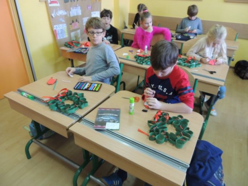 Trzecioklasiści mieli okazję stworzyć wspaniałe ozdoby bożonarodzeniowe. Wszystkie dekoracje wykonane zostały z rolek po papierze toaletowym. Dzieci zrobiły wieńce oraz ciekawe mikołajki. Wszystkie ozdoby upiększyły mieszkania uczniów.