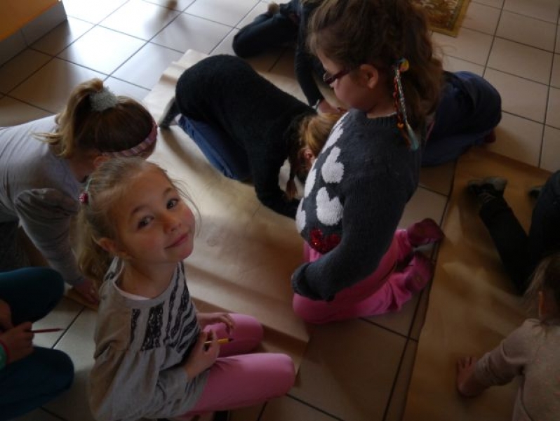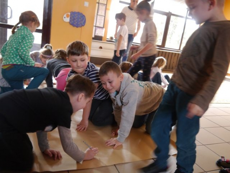 W poniedziałek uczniowie klasy Ib rozmawiali o tym, jak być miłym i uprzejmym dla innych. Poprzez wspólną rozmowę dzieci doszły zgodnie do wniosku, że wszyscy powinni być dla siebie mili i sobie pomagać bez względu na płeć, wiek czy kolor skóry. Podczas zajęć została przedstawiona scenka, której celem było pokazanie naszym dzieciom, że z każdej sytuacji można znaleźć wyjście i dojść do kompromisu oraz że nie warto tracić czasu na kłótnie. Podsumowując temat uczniowie wykonali dwie postacie. Jedna z dziewczynek i jeden chłopiec (z naszej klasy) zostali odrysowani na szarym papierze przez pozostałych uczniów. Następnie cała klasa pokolorowała narysowane postacie. Mimo różnych zdań i gustów wszystko wyszło pięknie. Dzieło stworzone przez uczniów klasy Ib pokazało im, że dzięki wspólnej pracy i byciu dla siebie miłym mogą stworzyć zgrany zespół.