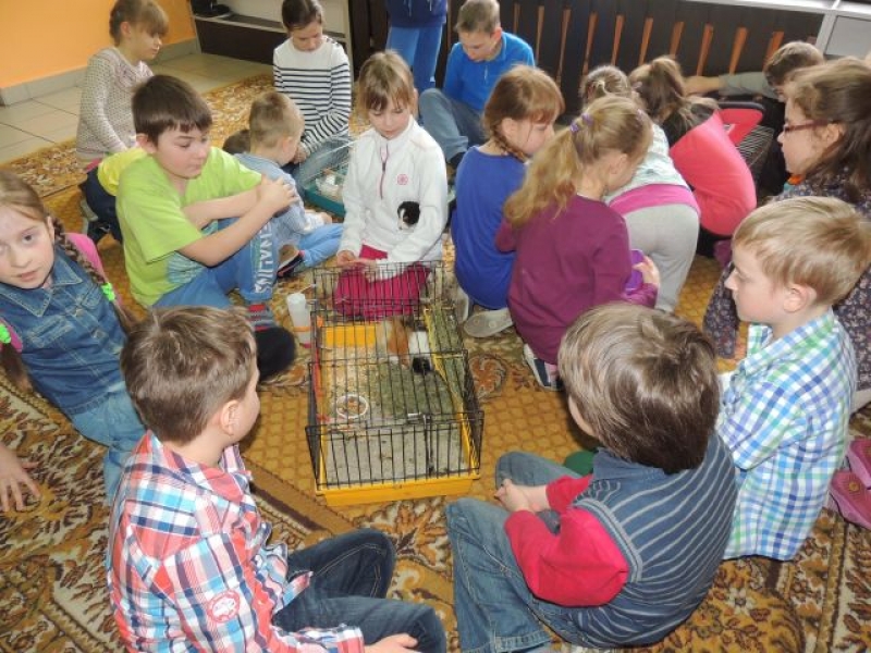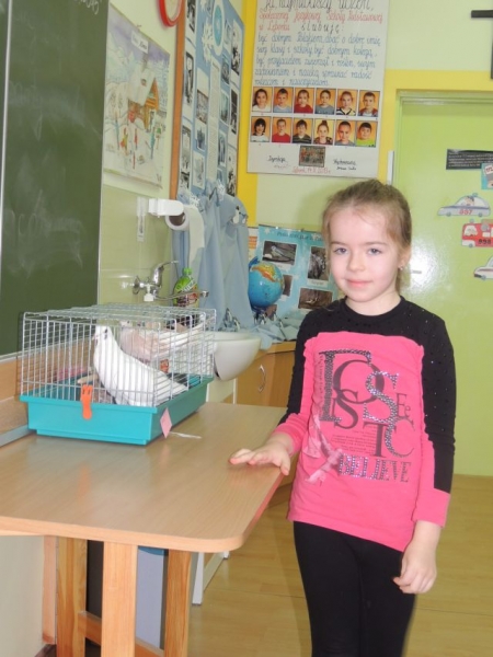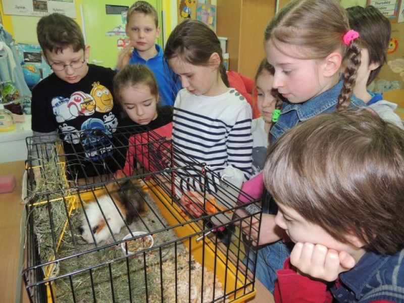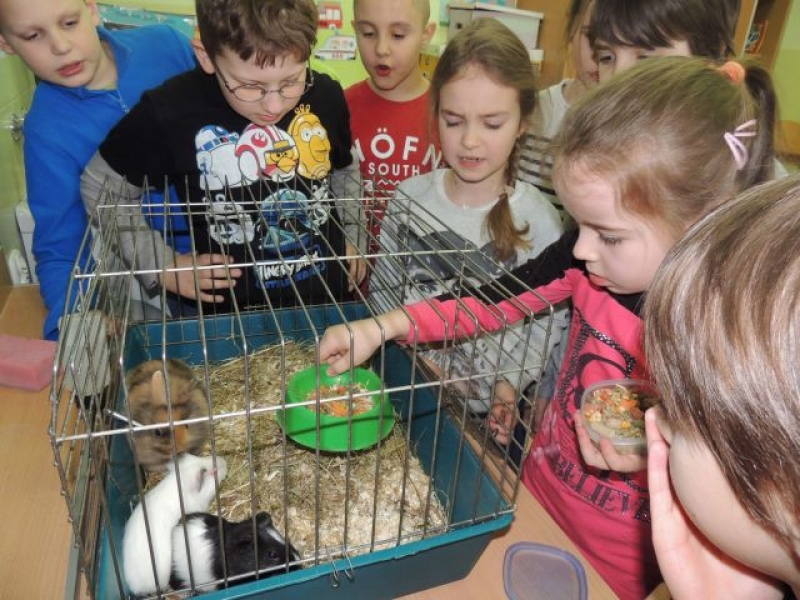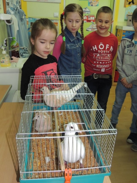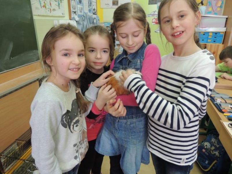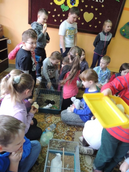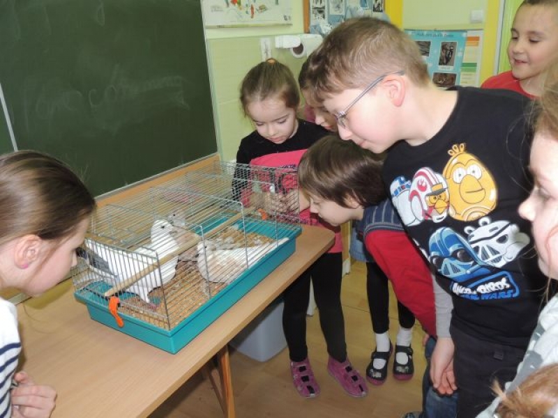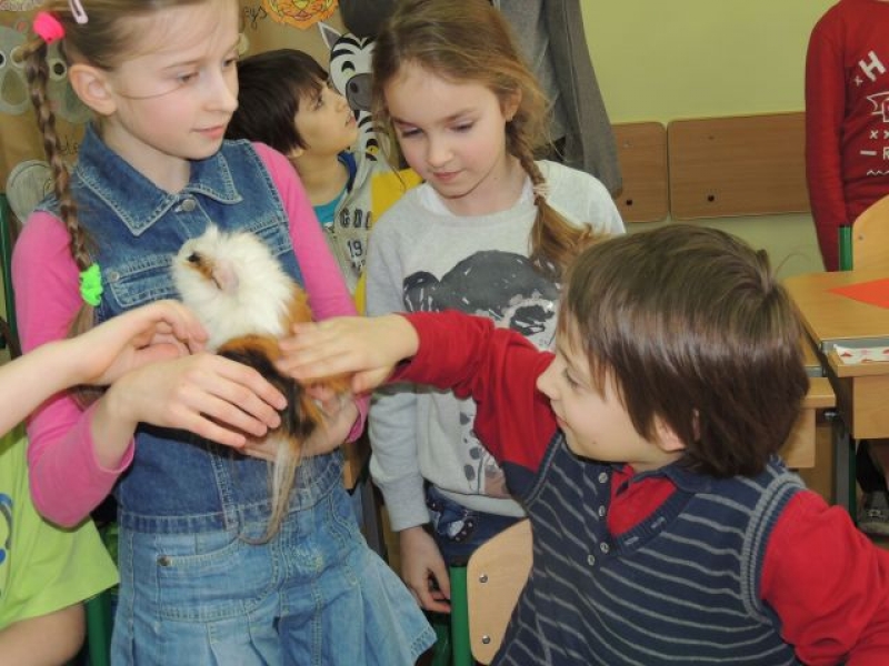 Naszą szkołę odwiedzili nietypowi goście. Drugoklasiści przyszli dziś bowiem do klasy ze swoimi zwierzątkami. Dzieci miały okazję przyjrzeć się takim zwierzątkom, jak: chomik, świnki morskie, króliczek czy gołębie. Uczniowie prezentujący swoich ulubieńców opowiadali o ich zwyczajach, cechach charakterystycznych i sposobach odżywiania. Uświadomili innym, jak należy właściwie opiekować się zwierzętami domowymi. Ważnym wnioskiem z tych zajęć było stwierdzenie, że „zwierzątko to nie zabawka dla dziecka”, czyli że zwierzęta to stworzenia żywe, które też czują i należy zagwarantować im dobre warunki do życia i rozwoju. Był to dzień pełen wrażeń, nie tylko dla właścicieli zwierzątek. Wszystkie dzieci chętnie podziwiały tych niecodziennych „gości”.