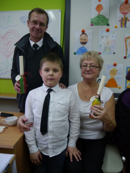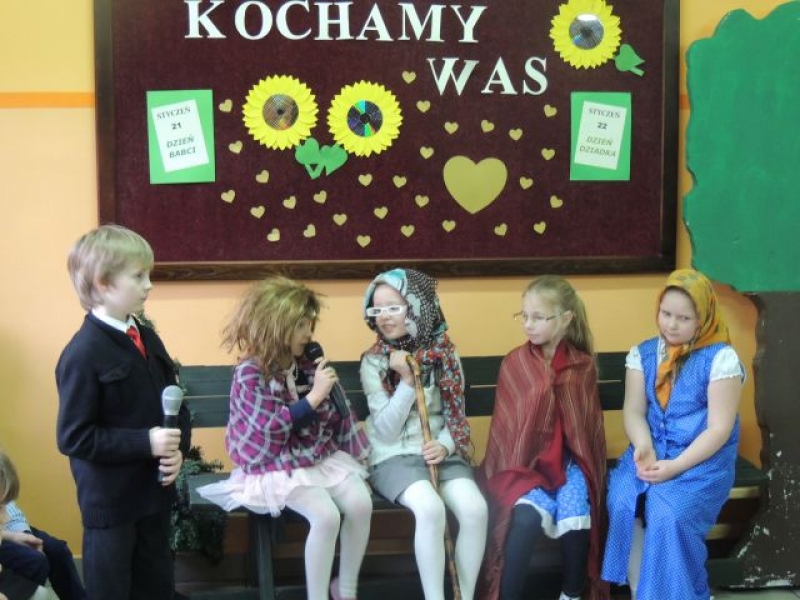 W piątek dzieci z klasy Ia i Ib zaprosiły swoje babcie i swoich dziadków na uroczystą Akademię z okazji Ich święta. Dziewczynki i chłopcy z wielkim zaangażowaniem przygotowywali się do występu dla tak ważnych gości. Pięknie recytowane wiersze przeplatane były śmiesznymi scenkami, w których głównymi bohaterami były babcie, dziadek i oczywiście ich ukochane wnuczęta. Na zakończenie dzieci wspólnie zaśpiewały piosenkę i wszyscy razem złożyli życzenia. Nasi goście każdy występ nagradzali brawami, co bardzo motywowało i cieszyło młodych artystów. Po występie dzieci zaprosiły swoich gości do klas, gdzie zostały wręczone prezenty i złożone osobiste życzenia. Było dużo uśmiechów, uścisków, słodkości i fleszy.
