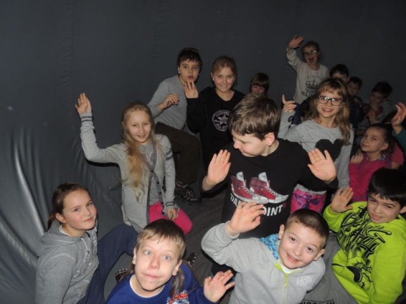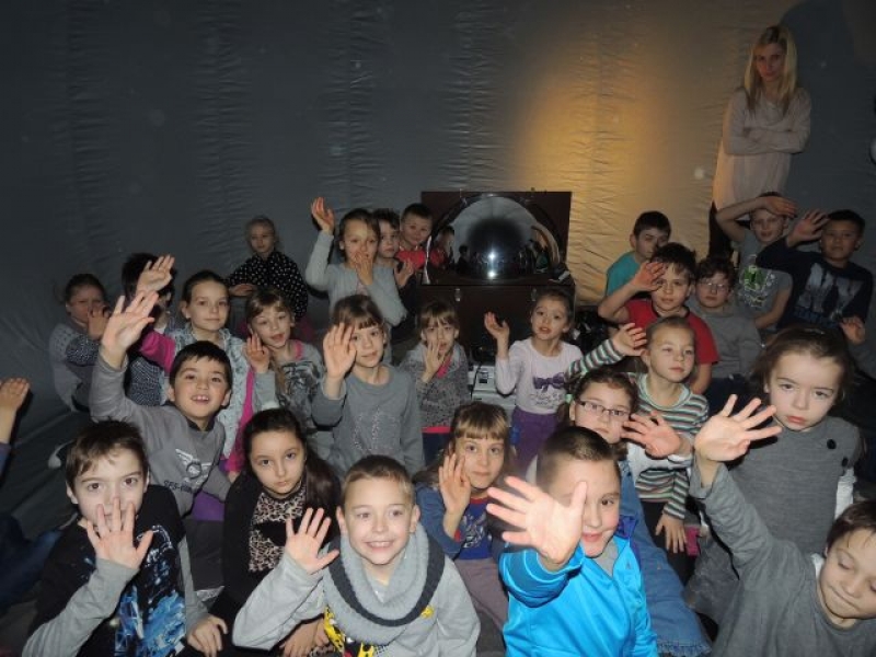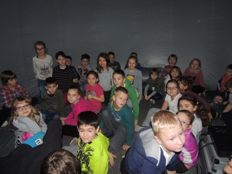 W dniu dzisiejszym naszą szkołę odwiedziło mobilne planetarium. Na szkolnym korytarzu stanęła wielka, półsferyczna kopuła, w której nasi uczniowie poznali wszystkie tajemnice wszechświata. Za pomocą najnowocześniejszego sprzętu dzieciom pokazano piękno Mikro - i MakroKosmosu - tak, by zachęcić ich do dalszych, pasjonujących odkryć. Tego typu zajęcia rozwijają wyobraźnię i spostrzegawczość oraz pogłębiają wiedzę.