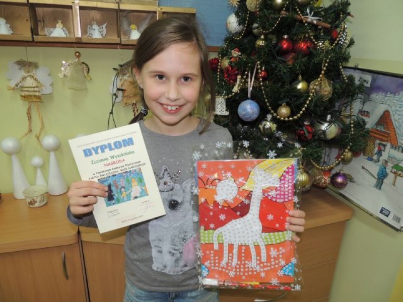 Na początku grudnia uczniowie naszej szkoły wykonali prace plastyczne na Powiatowy Konkurs Plastyczny „Kartka świąteczna - Boże Narodzenie”, którego organizatorem była Szkoła Podstawowa Nr 3 w Lęborku. Z wielką dumą informujemy, że NAGRODĘ w tym konkursie otrzymała ZUZANNA WYSOKIŃSKA z klasy IIb. Gratulujemy!