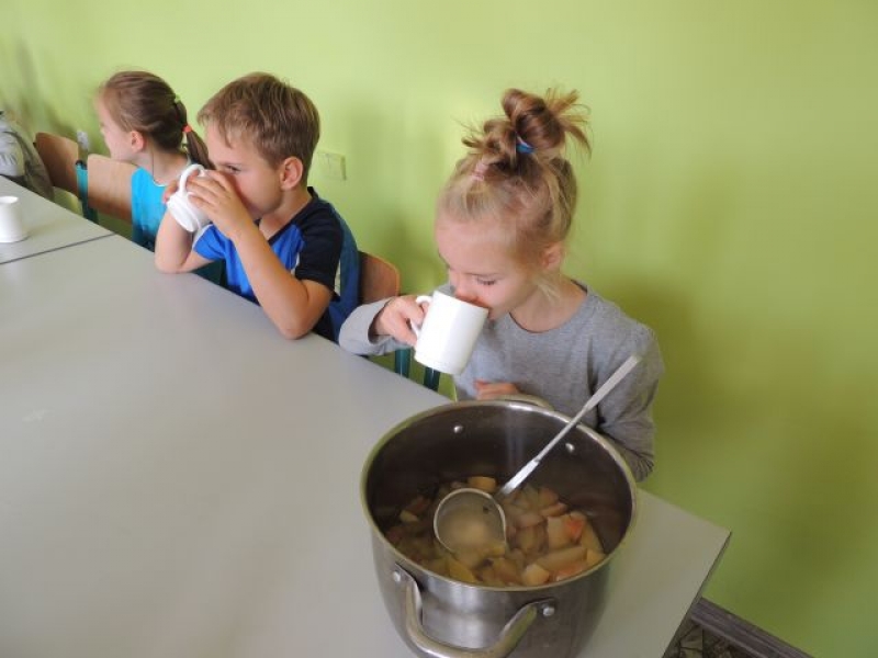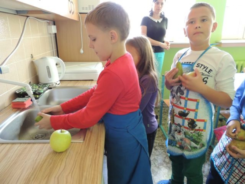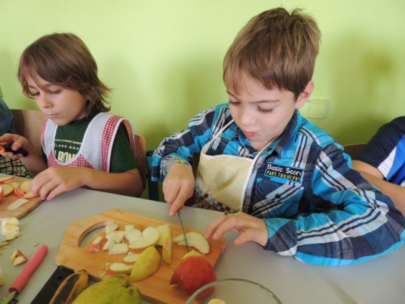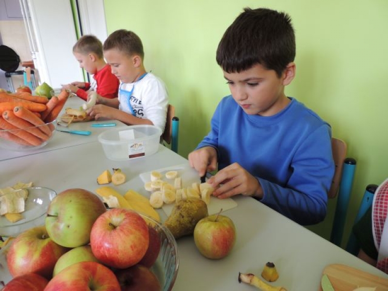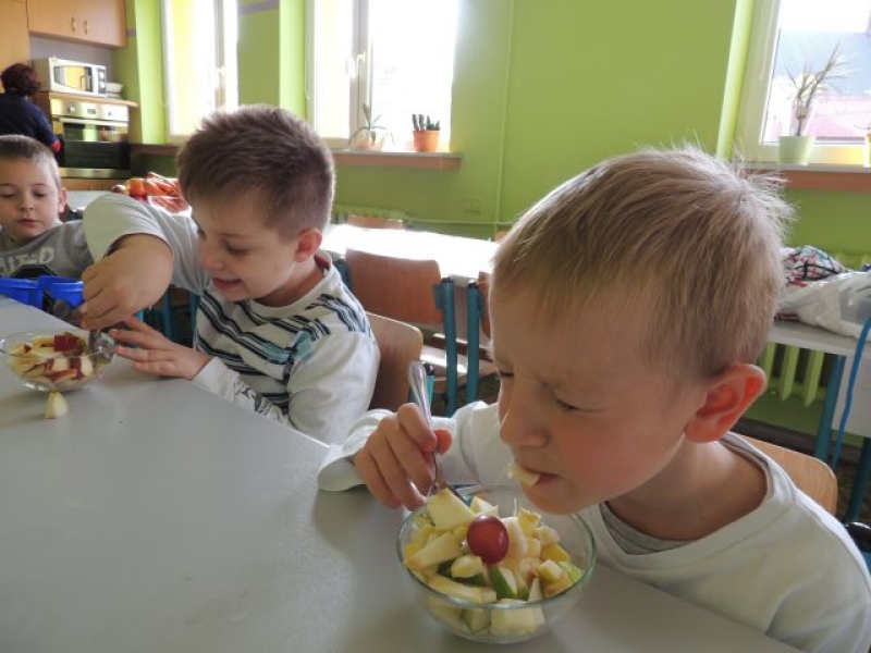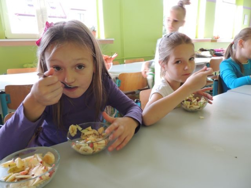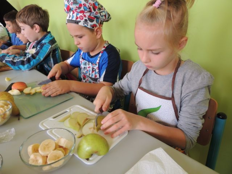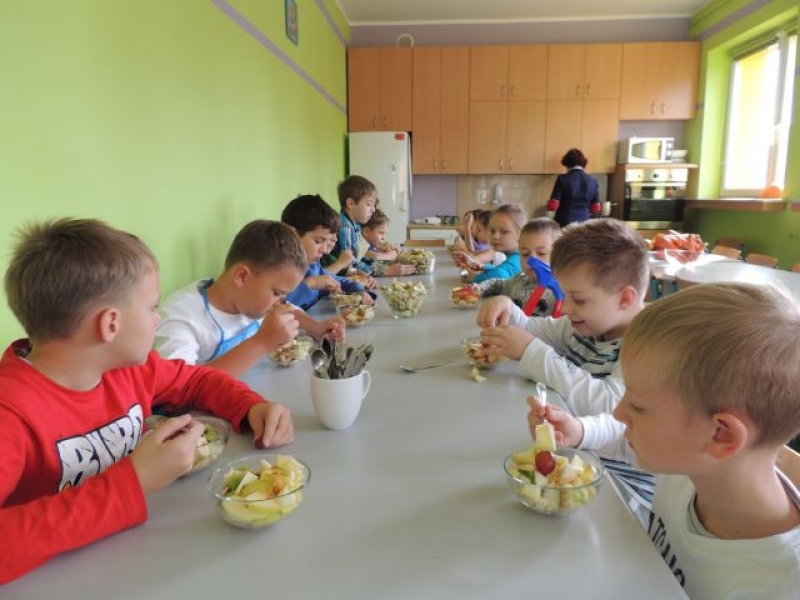 Klasa IIa uczestniczyła w zajęciach kulinarnych, podczas których miała okazję wykonać przepyszną sałatkę owocową. Uczniowie przygotowali na zajęcia jabłka, gruszki, banany, winogrona i kiwi, które najpierw umyli, a następnie samodzielnie pokroili. Każdy miał możliwość wyboru owoców do skomponowania swojej wyjątkowej sałatki, jaką później mógł zjeść. Niespodzianką okazał się kompot z jabłek i gruszek, który przywołał wspaniałe letnie wspomnienia z wakacyjnego wypoczynku.