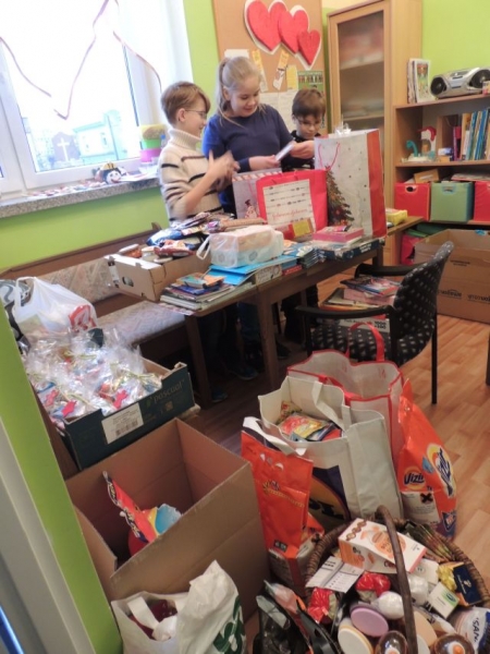 Rodzina Państwa Pluto-Prondzyńskich serdecznie dziękuje wszystkim za okazaną pomoc. Pani Sylwia była szczęśliwa, że uczniowie wraz z rodzicami zaangażowali się w przygotowanie świątecznych paczek.