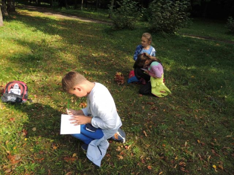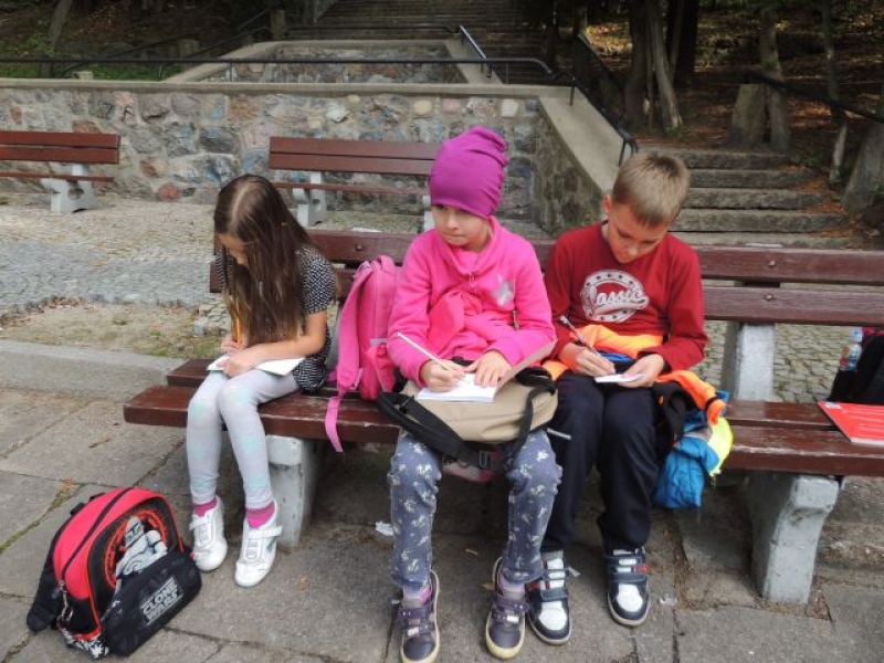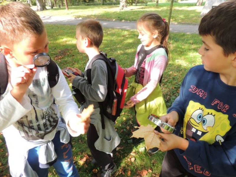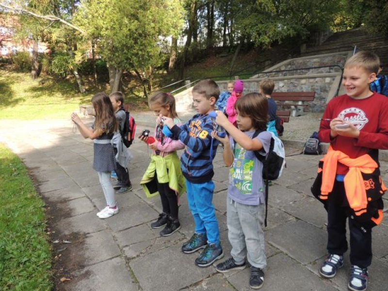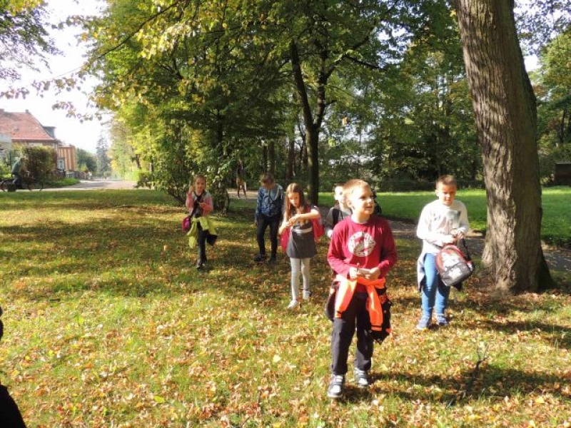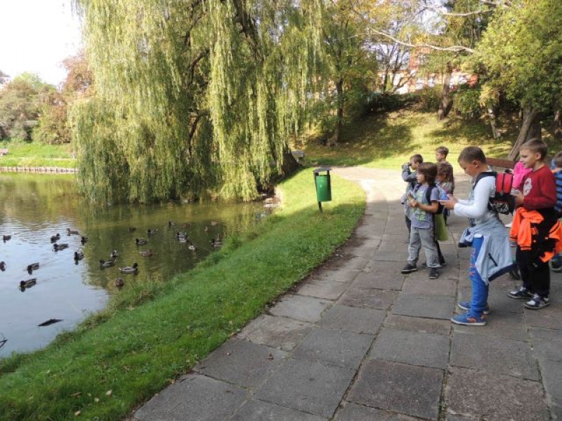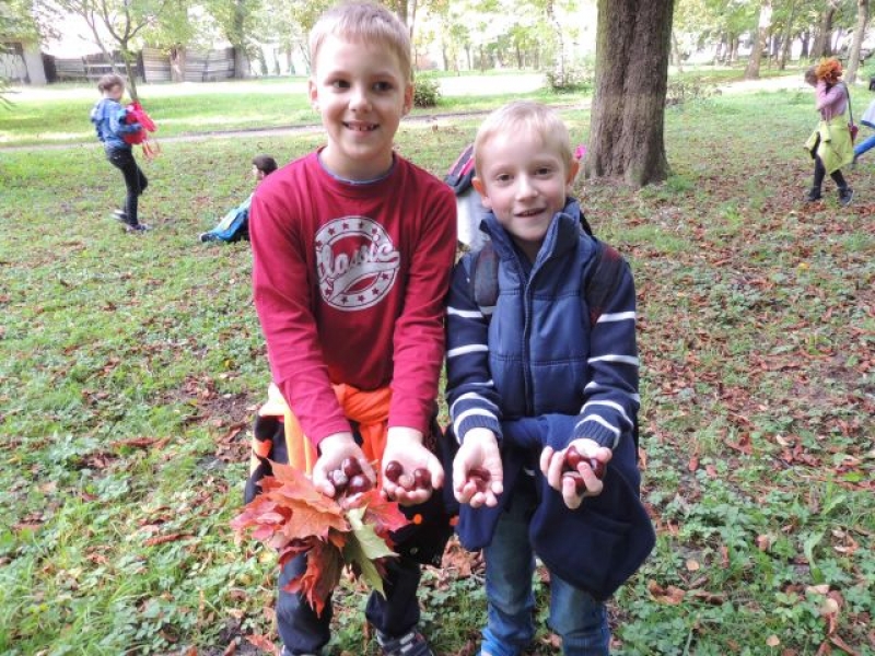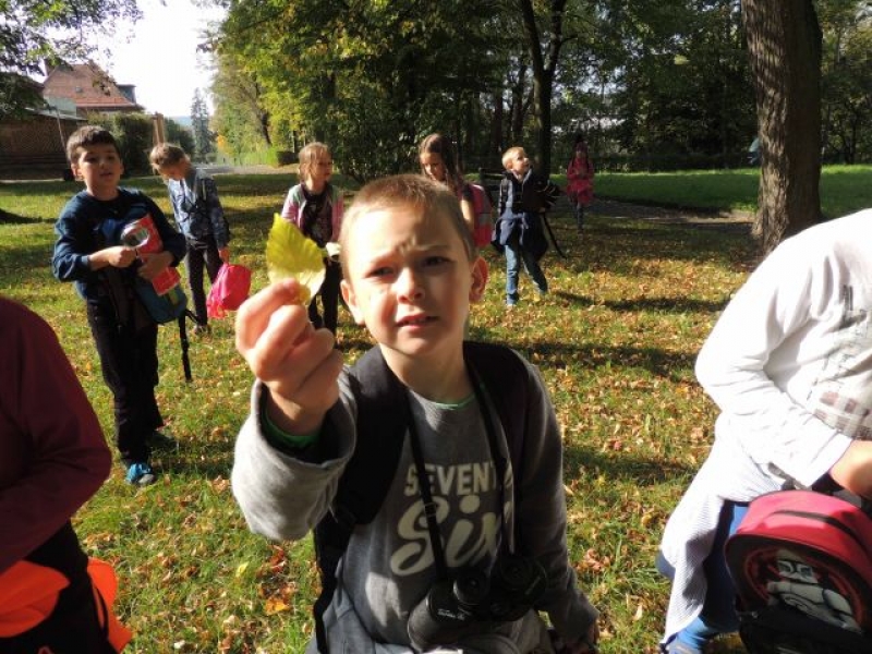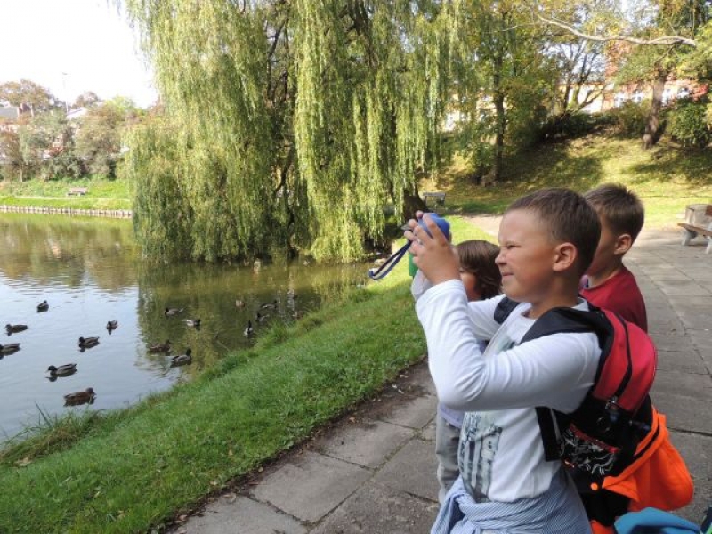 Uczniowie klasy IIa uczestniczyli w zadaniowym wyjściu do parku w celu obserwacji zmian zachodzących o tej porze roku. Na miejsce badań wyruszyli wyposażeni w lornetki, lupy, aparaty fotograficzne, notesy i przybory do pisania. Na miejscu zachwyciła wszystkich cisza, przyjacielsko nastawione ptactwo wodne, które można było podglądać, opisywać i fotografować. Dzieci zachwycały się kolorami jesieni, w które „ubrana” została przyroda, własnymi znaleziskami, okazami przyrodniczymi. Dużo satysfakcji sprawiło uczniom rozpoznawanie gatunków drzew liściastych i iglastych. Wizyta w parku okazała się bardzo przyjemna. Jesień powitała małych przyrodników piękną, słoneczną pogodą.
