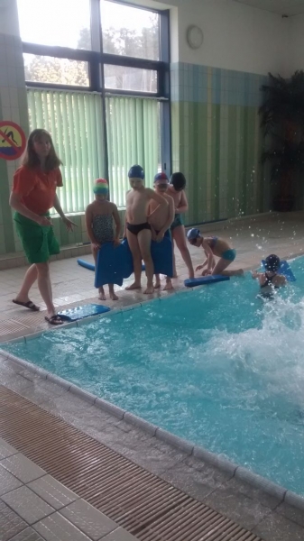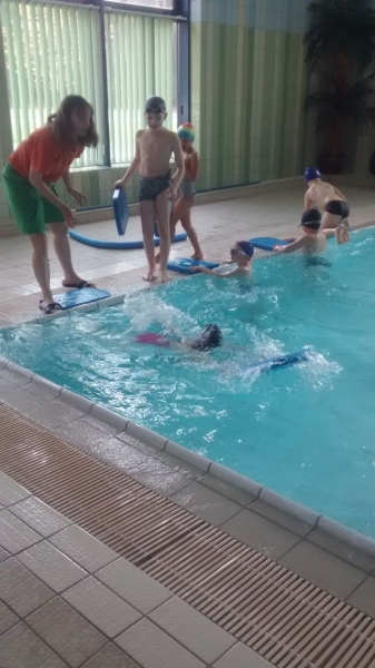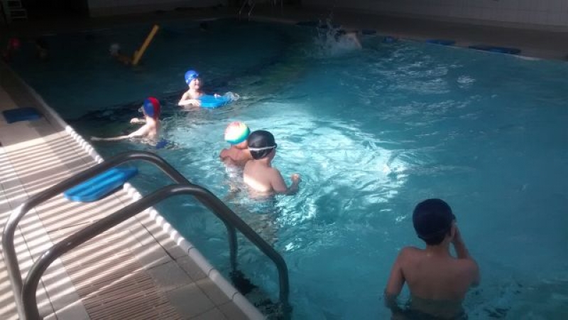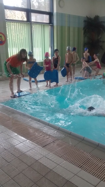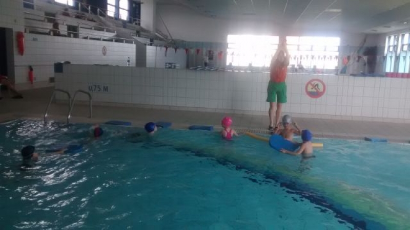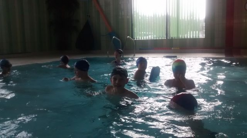 Uczniowie klasy Ia, tak samo jak wszyscy uczniowie naszej szkoły, mają zajęcia na basenie. Od września dzieci poczyniły ogromne postępy. Te, które nie umiały pływać już potrafią, a pozostałe doskonalą wcześniej nabyte umiejętności. Ćwiczenia i zabawy w wodzie w bezpieczny i przyjazny sposób oswajają z nowym środowiskiem, pozwalają pokonać strach i opór przed wodą. Nauka pływania przynosi wiele radości i pozytywnych emocji, a samodzielne pływanie daje dziecku satysfakcję ze zdobycia nowej, trudnej do opanowania umiejętności oraz podnosi wiarę we własne siły i możliwości.