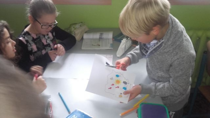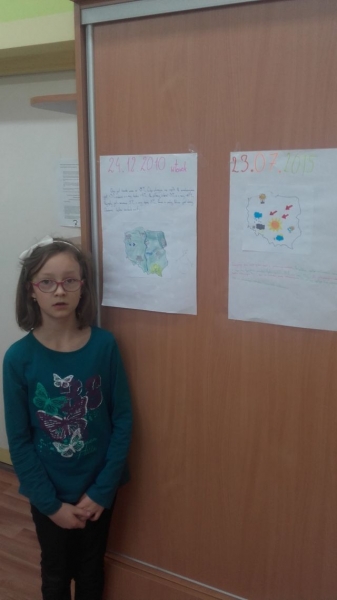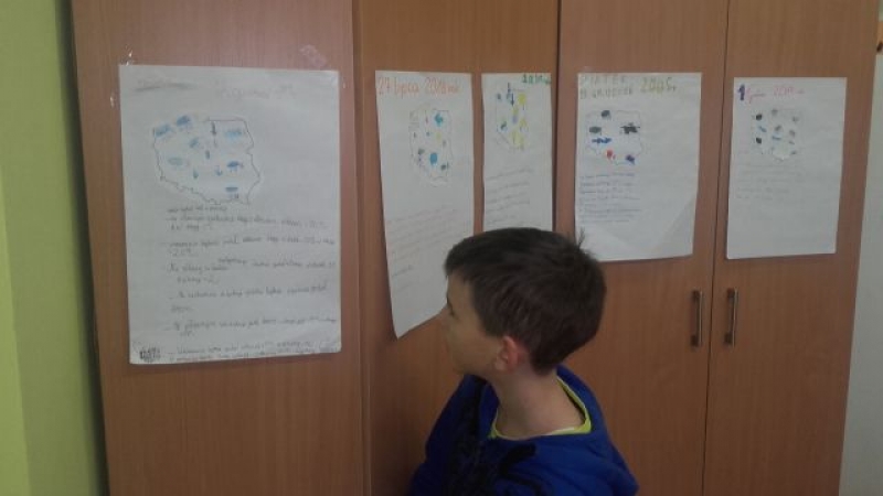 Poczas zajęć przyrody uczniowie klas IV mieli okazję spradzić się w roli prezentera pogody. Najpierw poszczególne grupy przygotowały prognozę pody dla Polski, a następnie zaprezentowały swoje propozycje na forum klasy.