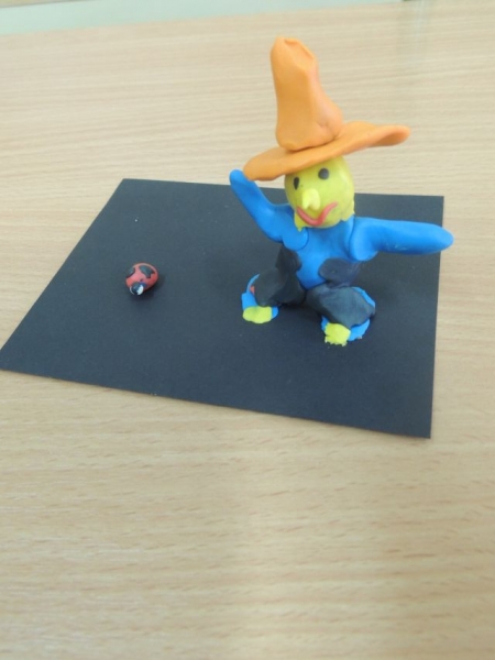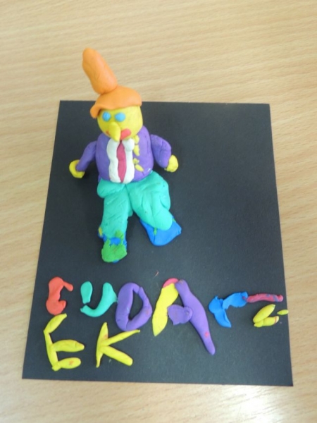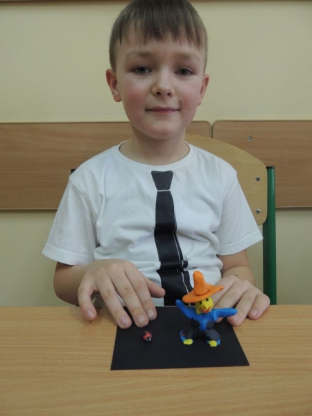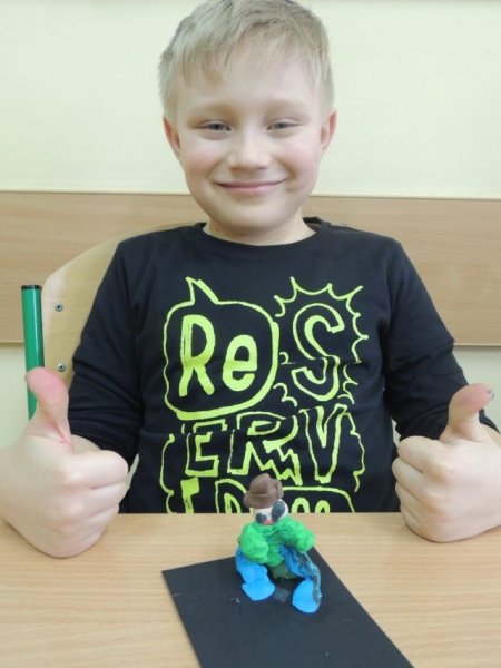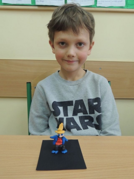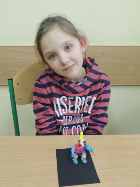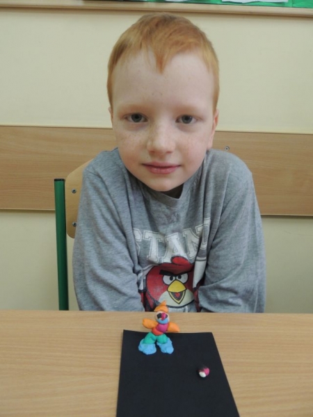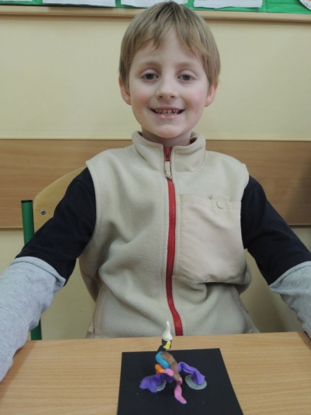 U biegłym tygodniu uczniowie klasy IIa przerabiali lekturę Julii Duszyńskiej Cudaczek - Wyśmiewaczek. To opowieść o pewnym skrzacie, który żyje śmiechem i bez trudu nakłania innych do złości, z czego czerpie radość. To właśnie takiego Cudaczka dzieci ulepiły z plasteliny na piątkowych zajęciach. I tak uczniowie IIa zakończyli przygodę z książką, która uczy, że każda zła postawa może ulec zmianie, natomiast każda osoba, która pragnie sie poprawić, może to uczynić w każdej chwili.