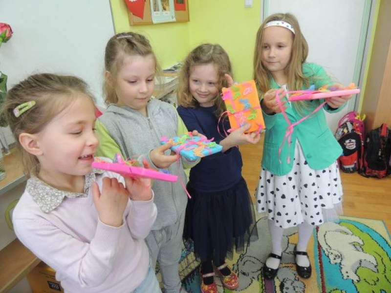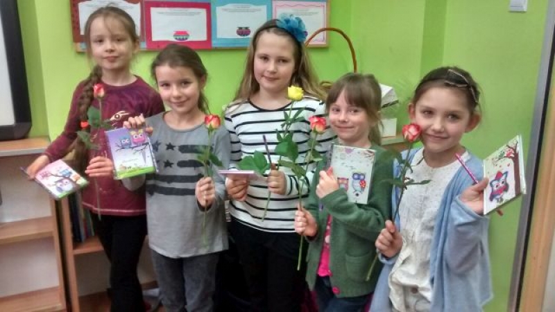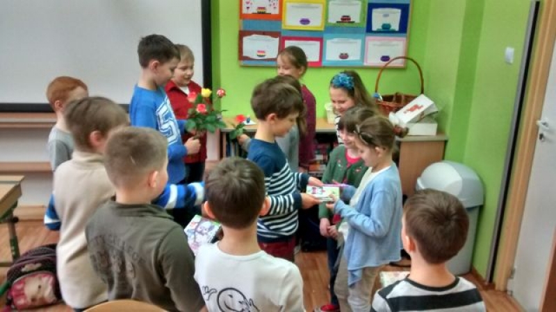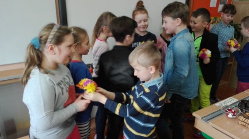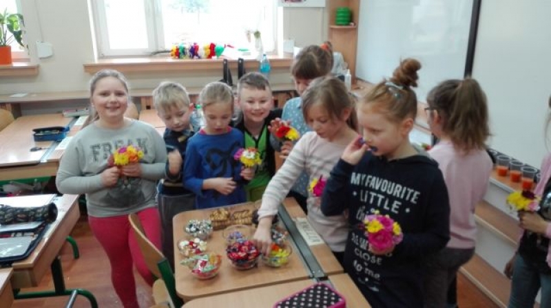 Dzień Kobiet i Dziewczynek przebiegał w naszej Szkole bardzo wesoło i uroczyście. Wszystkie Panie, te małe i duże, świętowały. Uczniowie przygotowali niespodzianki dla swoich koleżanek. Dziewczynki otrzymały kwiatki, jak i skromne prezenciki. Nie mogło zabraknąć słodkości i pysznych przekąsek. Na dziewczęcych buziach uśmiech gościł przez cały dzień, a chłopcy tego dnia starali się być mili i uczynni.