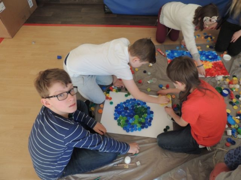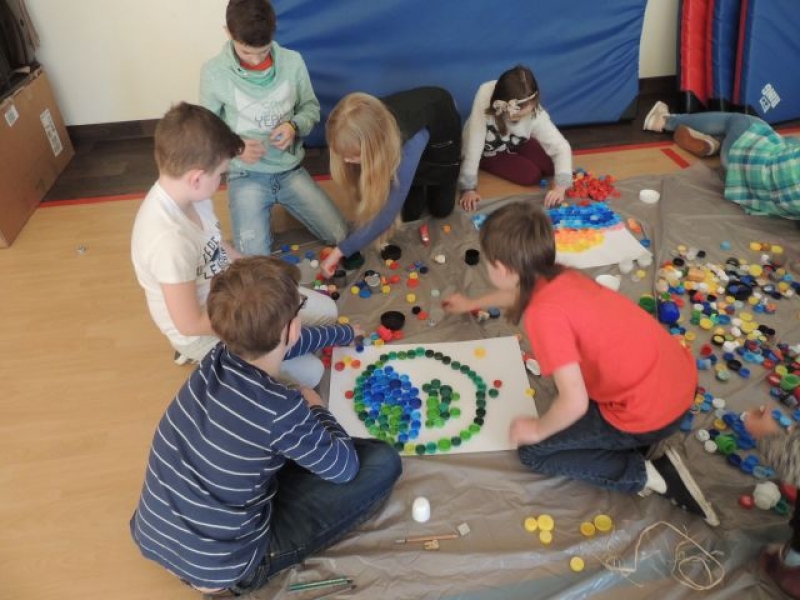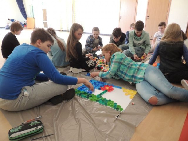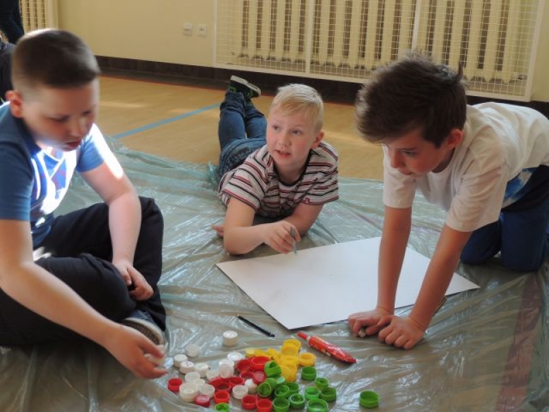 Uczniowie klas starszych mieli okazję obejrzeć prezentację multimedialną pt. „Earth Day 2016 – Save Earth – Save ourselves”. Również dla nich zostały zorganizowane zajęcia ekologiczne „Nadaj nakrętkom drugie życie”. Warsztaty te w fantastyczny sposób pokazały, jak wielką kreatywność posiadają nasi uczniowie, którzy ze zwykłych nakrętek stworzyli wspaniałe obrazy.