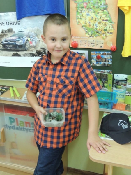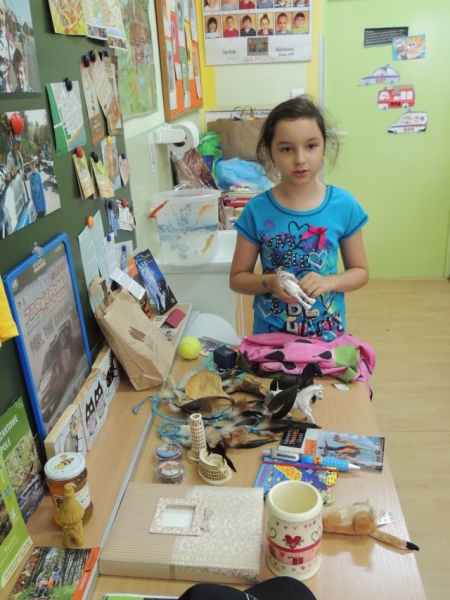 Trzecioklasiści zgromadzili w swojej klasie pamiątki z wakacji. W ten sposób powstała bardzo ciekawa wystawka. Dzieci prezentując różne „skarby” z wielkim entuzjazmem opowiadały o związanych z nimi wakacyjnych przygodach. Okazało się to wspaniałym pomysłem na zatrzymanie miłego letniego czasu.