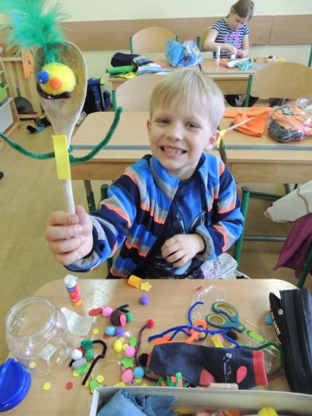 Uczniowie klasy Ib mieli okazję pokazać wszystkim, jak bardzo są kreatywni i pomysłowi. Na zajęciach, dzięki pomocy wychowawcy, zrobiły przepiękne pacynki. Aby je wykonać, użyły drewnianych łyżek ozdobionych kolorowymi materiałami, wełną oraz guzikami. Takie zajęcia plastyczne są dla dzieci wielką frajdą. Nikomu nie zabrakło fantazji!