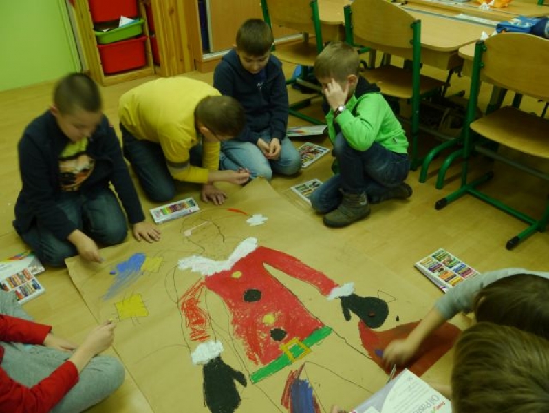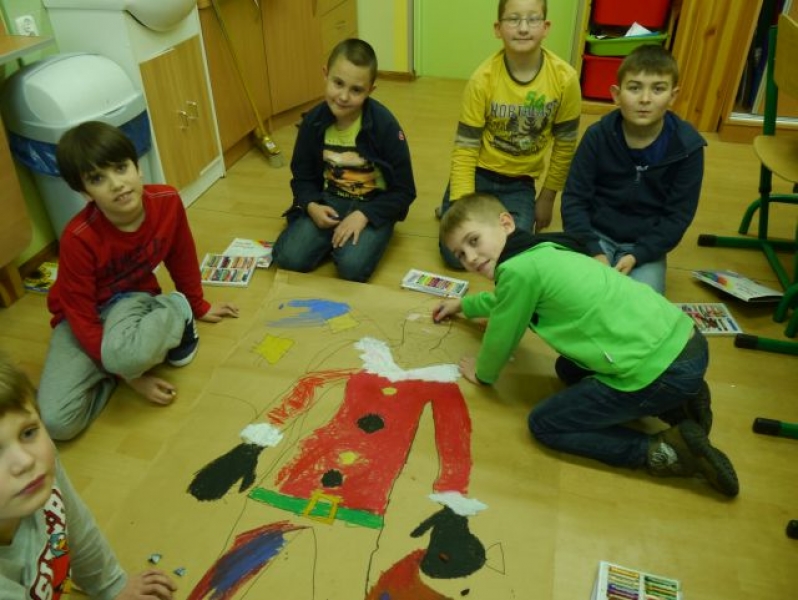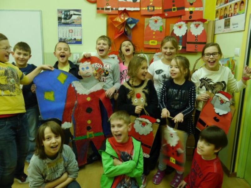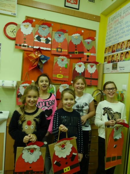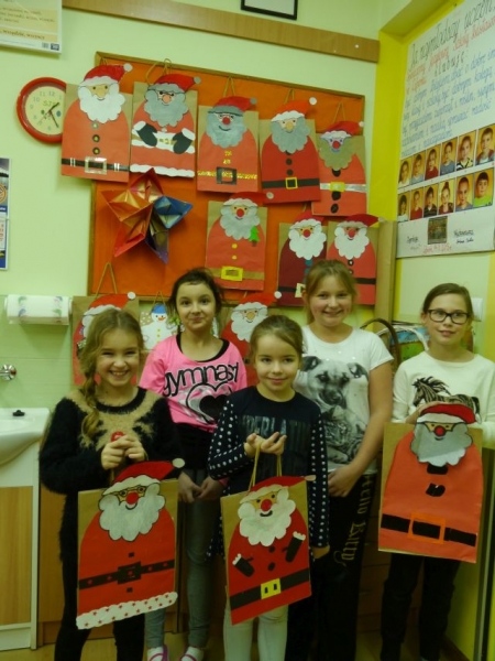 W ubiegłym tygodniu, w związku z Mikołajkami, dzieci z klasy IIIb wykonały dekoracje mikołajkowe. Mianowicie: uczniowie ozdobili sylwetkami Mikołaja szare torby papierowe. Tak przygotowane mikołajkowe torebki zostały przekazane na kiermasz świąteczny jako ciekawa propozycja opakowania na prezent świąteczny. Poza tym dzieci w grupach wykonały sylwetę pana Mikołaja i pani Mikołajowej. Zajęcia te dostarczyły uczniom sporo radości.