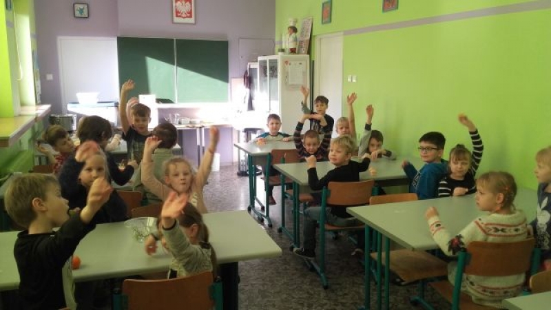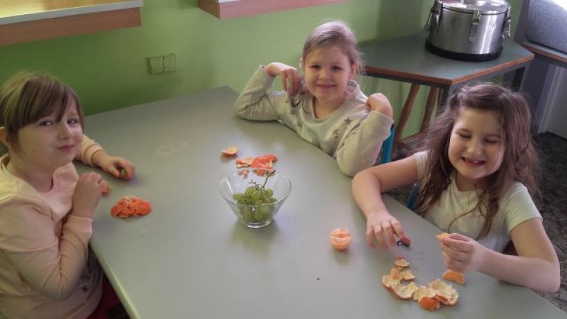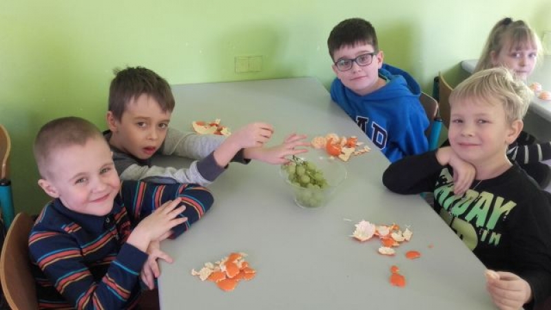 W poniedziałek, 1 lutego 2016r., uczniowie klasy pierwszej mieli bardzo smaczne zajęcia kulinarne. Dzieci kosztowały pyszne owoce, takie jak mandarynki i winogrona a na deser dostały wspaniały koktajl bananowy.