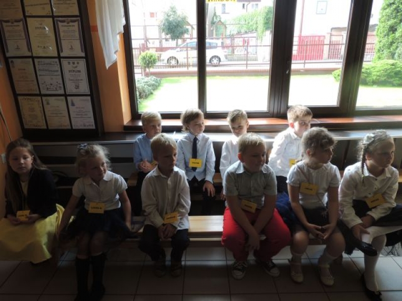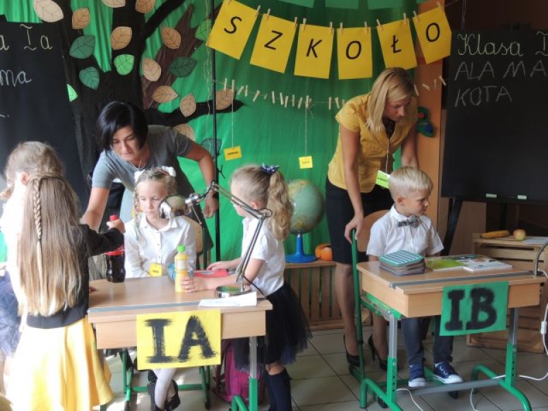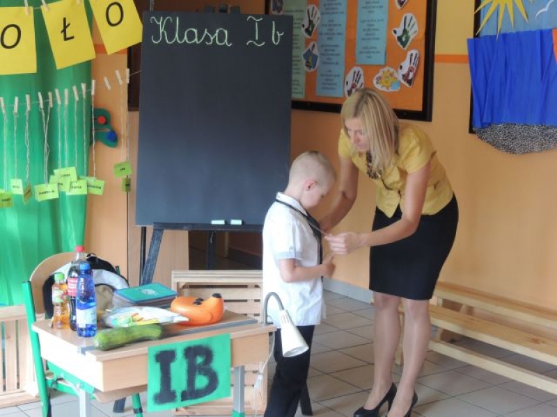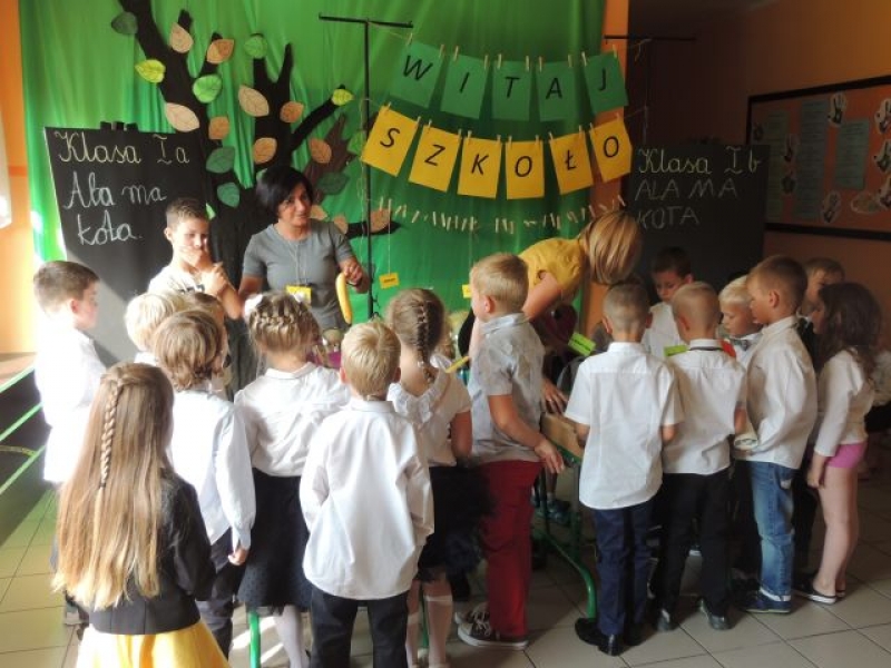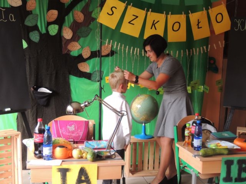 Szczególne słowa zachęty skierowane zostały do pierwszoklasistów, którzy dopiero rozpoczynają swoją wędrówkę po świecie nauki. Pani Dyrektor przedstawiła wychowawców tegorocznych klas pierwszych, czyli p. Martę Cużytek (kl.Ia) oraz p. Martynę Dramczyk (kl.Ib).