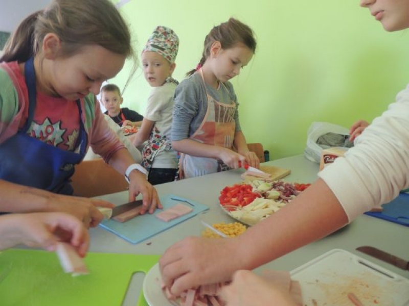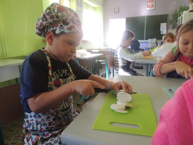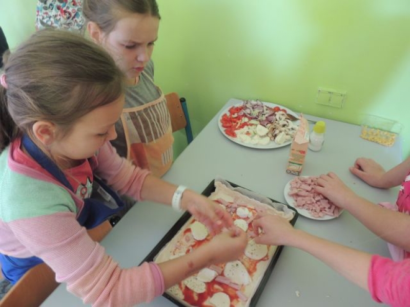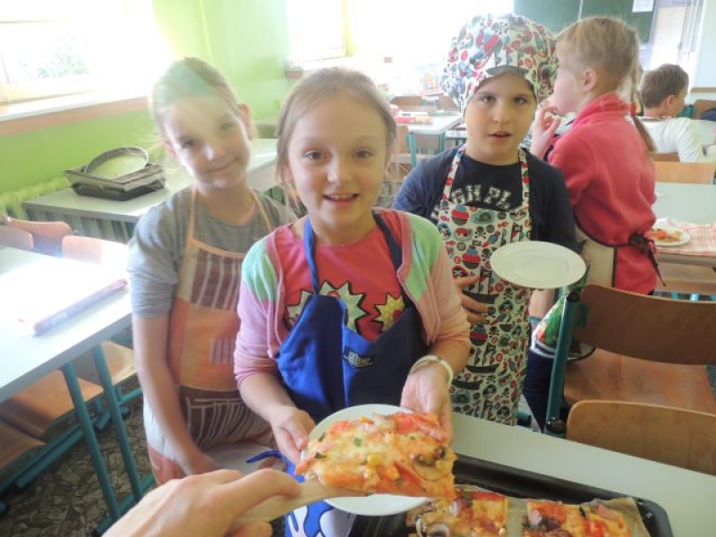 Uczniowie klasy IIIa zdobyli wspaniałe doświadczenie z dziedziny gastronomii. Własnoręcznie wykonali smakowite pizze, wykorzystując w tym calu wiele zdrowych warzyw. Zadanie kulinarne okazało się dla dziewczynek i chłopców sposobem na pozyskanie nowych umiejętności i zarazem świetnej zabawy. Wspólne jedzenie wpłynęło na utrwalenie radosnego nastroju i integrację klasy. Po zajęciach przepis na doskonałe danie znalazł się w zeszycie do języka polskiego. Uczniowie klasy IIIa postanowili, że wykonają pizzę jeszcze raz - w domu z rodzicami. Polecamy!