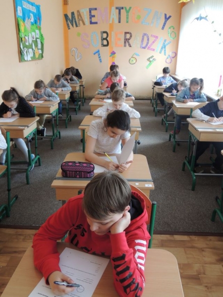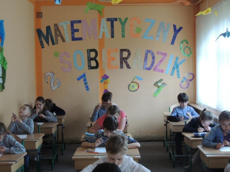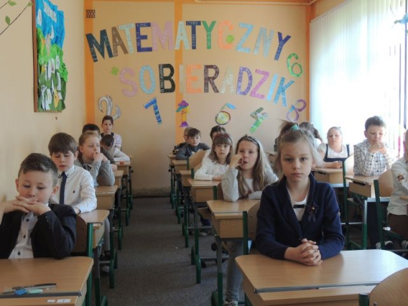 Dnia 27 kwietnia 2016r. uczniowie klas I - III przystąpili do Szkolnego Konkursu Matematyczny Sobieradzik. Konkurs miał formę testu pisemnego i trwał 45 minut. Celem konkursu było rozwijanie i kształcenie sprawności rachunkowej u dzieci, prezentacja wiedzy i umiejętności oraz wzbudzanie pozytywnej rywalizacji wśród uczniów.