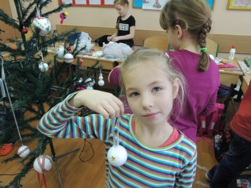 W środę w klasie IIb odbyły się świąteczne warsztaty klasowe pod hasłem „Święta tuż, tuż””. Uczniowie przygotowali przepiękne kartki świąteczne na szkolny kiermasz. W ruch poszły wstążki, kokardki, guziki, koraliki. Wszystko, co wpadło w ręce nabierało świątecznego znaczenia. Następnie dzieci własnoręcznie wykonały ozdoby choinkowe. Choinka w klasie IIb jest wyjątkowa. Wiszą na niej przepiękne aniołki, kolorowe łańcuchy, uśmiechające się bombeczki i gwiazdki.
