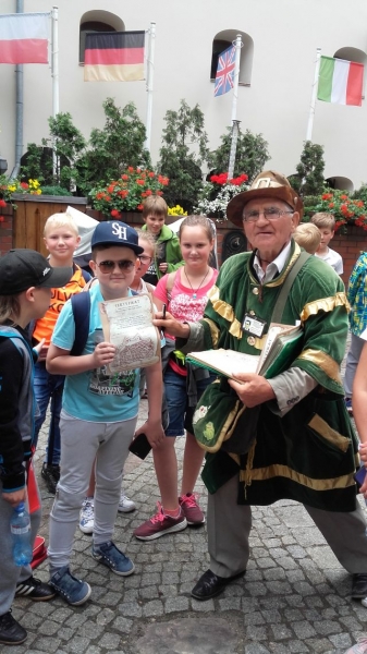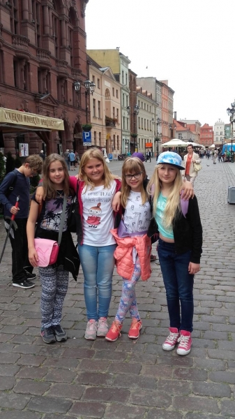 W dniach 13-14 czerwca klasy IVa i IVb uczestniczyły w wycieczce do Torunia. Podczas całego pobytu dopisywała nam cudowna pogoda i fantastyczne humory. Przez te dwa dni poznaliśmy uroki Torunia: Stare Miasto z malowniczymi kamieniczkami, mury i bramy miejskie, Krzywą Wieżę, ruiny Zamku Krzyżackiego, katedrę toruńską, dom i pomnik Kopernika, Ratusz Miejski i wiele, wiele innych. W przerwach w zwiedzaniu wzięliśmy udział w warsztatach w Piernikarni, mydlarni i laboratorium chemicznym. Dzieciom bardzo podobał się również pobyt w ogrodzie zoobotaniocznym, gdzie poznali „Zwierzaki dziwaki” a chwilę odpoczynku zapełnił cień różnorodnej roślinności parku. Niewątpliwą atrakcją poniedziałkowego wieczoru był pokaz światło-dźwięk toruńskich fontann.