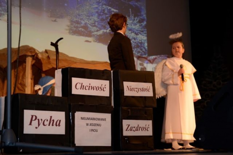 W sobotę, 23 stycznia 2016r, w Lęborskim Centrum Kultury „Fregata” odbył się XII Miejski Przegląd Jasełek. Uczniowie klas czwartych mieli przyjemność zaprezentować szerszej publiczności przedstawienie pt. „Betlejem jest w nas”. Młodzi aktorzy przedstawili historię oraz tradycję narodzin Dzieciątka Bożego wplecioną w dzieje współczesnego świata i jego problemów. Jasełka naszych uczniów przypomniały wszystkim zgromadzonym, jakie wartości są w życiu najważniejsze. Symboliczny mur porozumienia utworzyły: czystość, pokora, dobroć, miłość, przyjaźń, skromność i cierpliwość.
