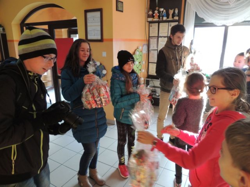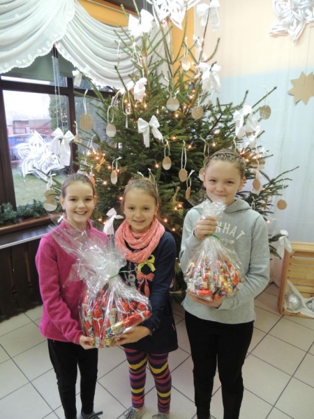 Tak duża ilość zebranych Mikołajów sprawiła radość wielu osobom. Nasze słodycze trafiły do następujących miejsc: Caritas w Łebuni, Dom Pomocy Społecznej nr 1 i nr 2, Dom Seniora „Magnolia”, noclegownia w Lęborku oraz Środowiskowy Dom Samopomocy „Lwiątko”. Ponadto część Mikołajków przekazana została pani Monice i panu Krzysztofowi, którzy są streetworekami w Lęborku. Wraz ze swoimi podopiecznymi odwiedzili naszą szkołę i tym samym klasa IIIb miała zaszczyt osobiście podarować im słodkości.