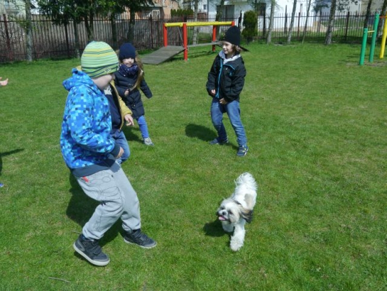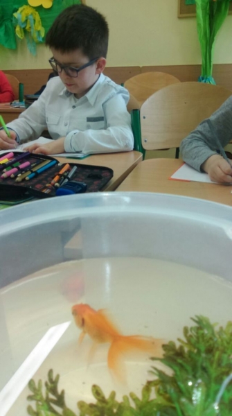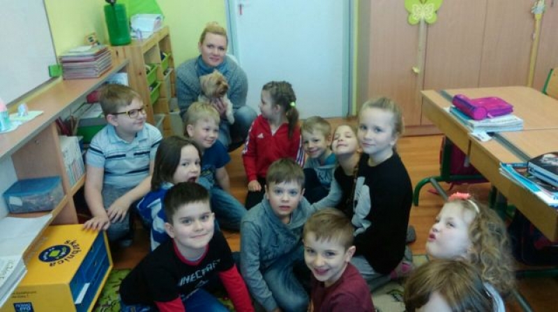 Klasę Ia odwiedzali ostatnio różni goście. Były u nas pieski: najpierw Sunia, a później Charlie. Milutkie małe pieski stały się wspaniałymi kompanami do zabawy. Dzielne psiaki sprostały trudnemu zadaniu – z radością zniosły wesołe okrzyki dzieci. W klasie gościły też rybki. Dwie złote welonki spędziły z nami cały dzień, spełniając nasze życzenia.