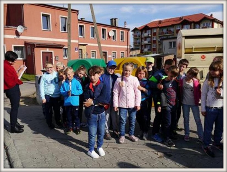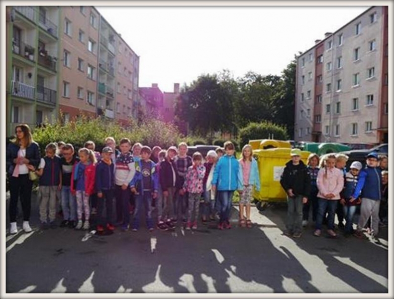 19 września nasza szkoła wzięła udział w akcji Sprzątania Świata, tym roku pod hasłem „Podaj dalej… drugie życie odpadów”. Klasa pierwsza zadbała o czystość terenu na placu zabaw. Klasy drugie i trzecie z planami najbliższej okolicy wybrały się na spacer w celu zlokalizowania pojemników na odpady. Ich zadaniem było ocenić, czy jest ich dużo czy mało.