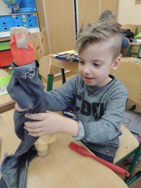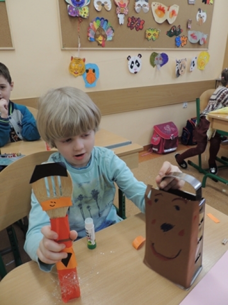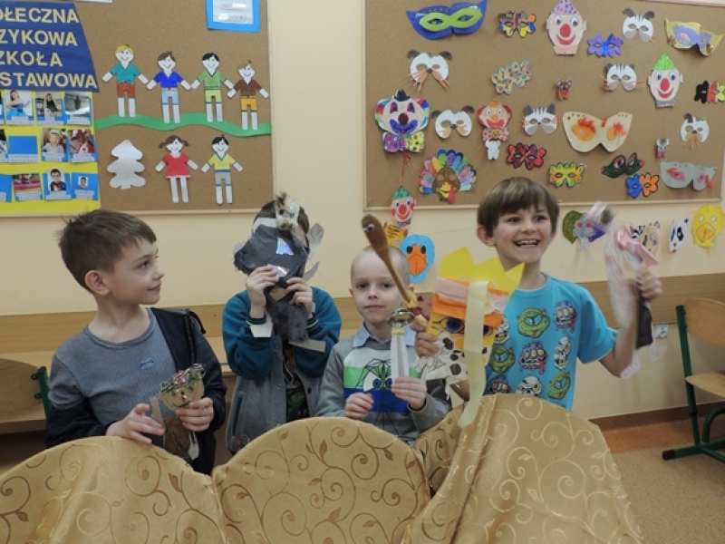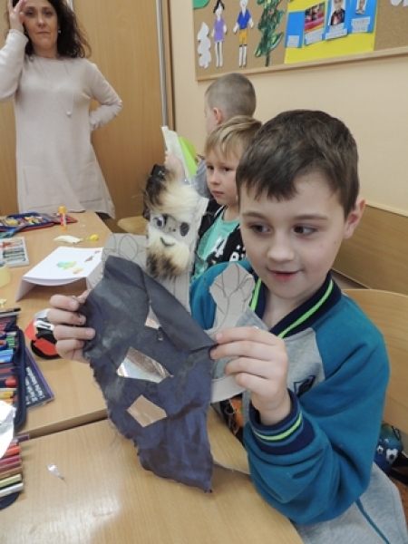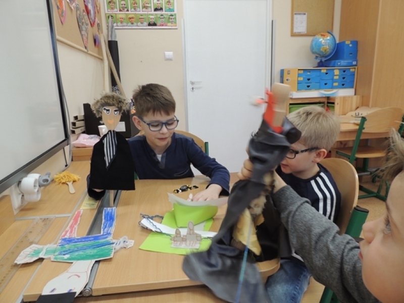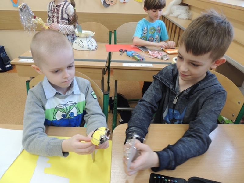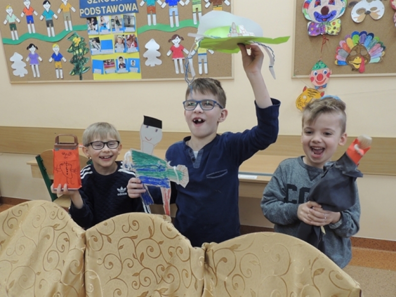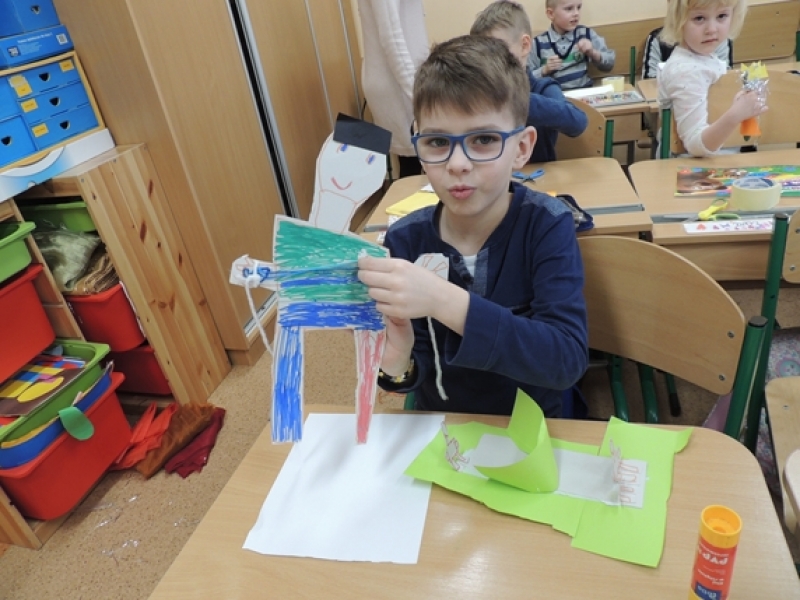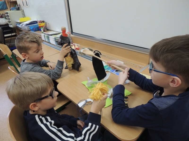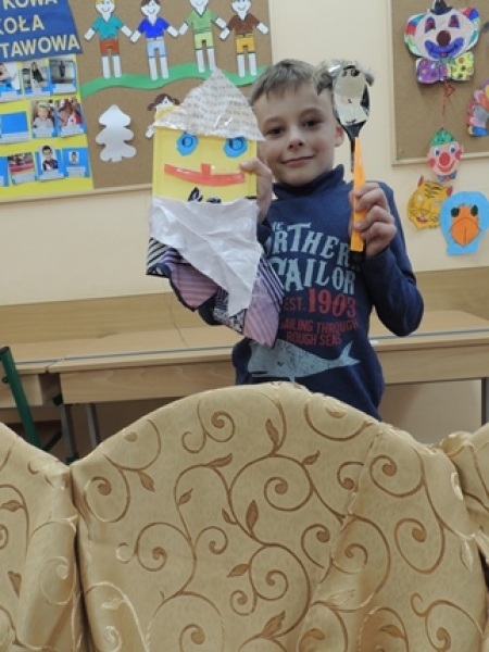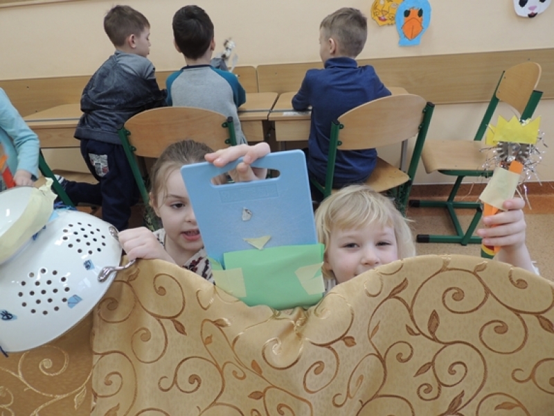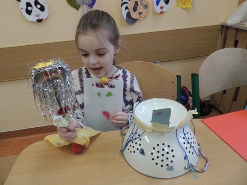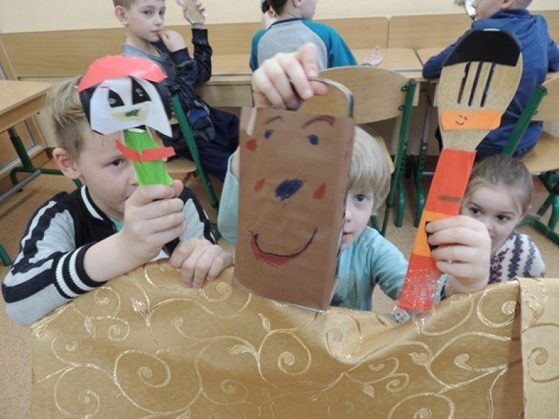 Pierwszoklasiści w ramach zajęć Klubu Twórczego Dziecka zajęli się ożywianiem przedmiotów użytku kuchennego. Dzieci, wykorzystując swoją wyobraźnię i kreatywne myślenie, przygotowały w grupach postacie do krótkich etiudek teatralnych. Użyły do tego różnorodnych materiałów papierniczych i tekstylnych. Finalnym efektem ich twórczych działań były krótkie scenki z wykorzystaniem wykonanych ,,postaci” i rekwizytów zaprezentowane rówieśnikom.