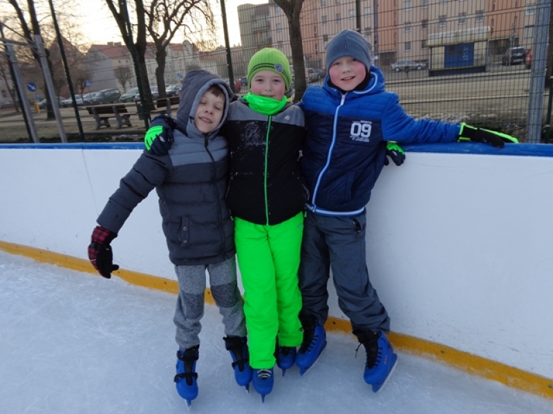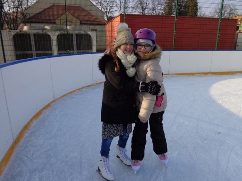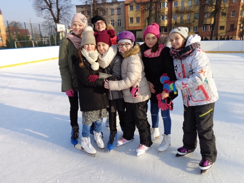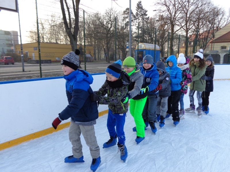 Wprawdzie nie ma już śniegu, ale mróz nie odpuszcza więc pogoda sprzyja, aby lekcje wychowania fizycznego odbywały się na lodowisku. Dzieci radzą sobie coraz lepiej i widać, że jazda na łyżwach sprawia im przyjemność.