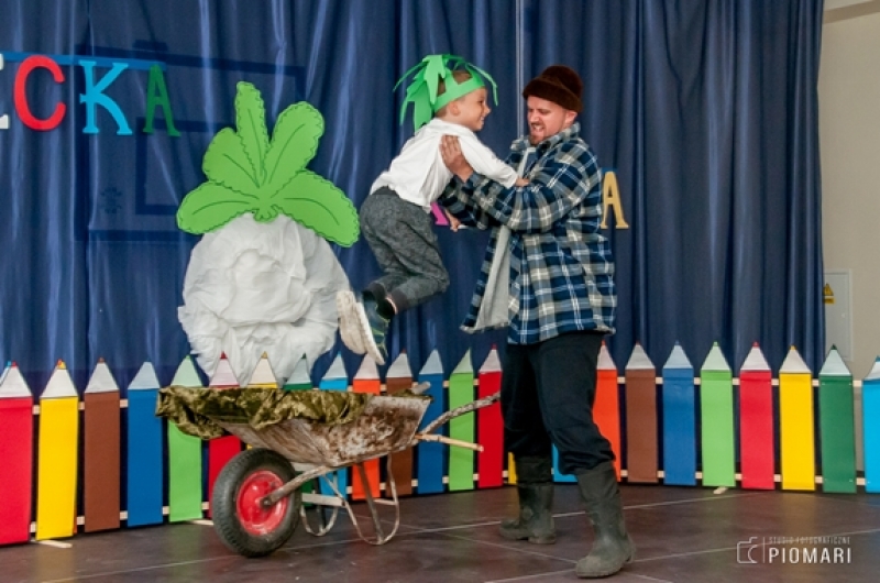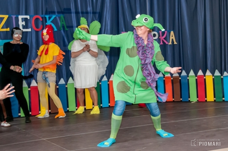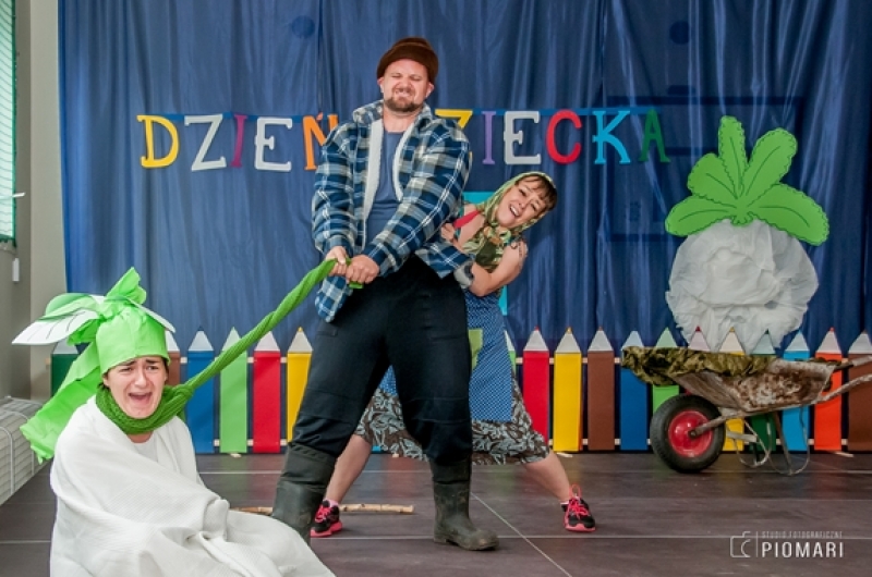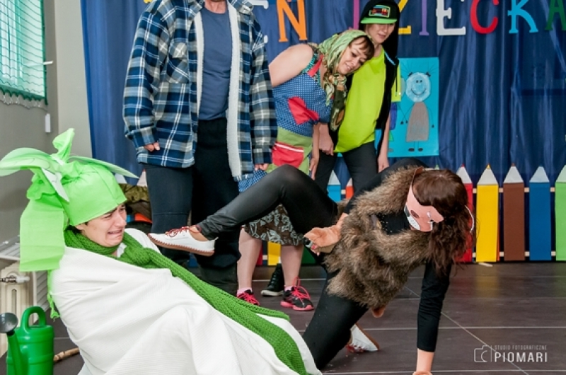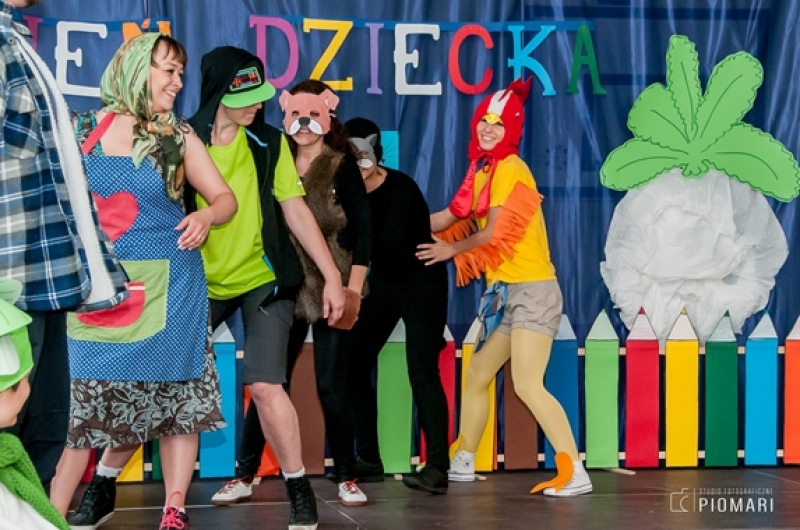 1 czerwca to dzień szczególny dla wszystkich dzieci. Właśnie dlatego przygotowaliśmy dla naszych uczniów moc atrakcji, bez lekcji, książek i tornistrów. Z okazji Dnia Dziecka na naszych podopiecznych czekała prawdziwa niespodzianka. Tym razem, specjalnie dla nich, nauczyciele wystąpili na szkolnej scenie w przedstawieniu pt. „Rzepka”. Uczniowie mieli okazję zobaczyć swoich nauczycieli w zupełnie nowych, bardzo zabawnych rolach. Dla dzieci było to niezwykłe przeżycie. Młodzi widzowie byli zachwyceni, czego dowodem były gromkie brawa dla aktorów. Kolejne atrakcje czekały na dzieci na boisku szkolnym: dmuchana zjeżdżalnia, strzelanie z łuku, malowanie buzi, puszczanie baniek mydlanych, odbijanie dłoni, balony, a także słodkości (ciasta, gofry, popcorn).