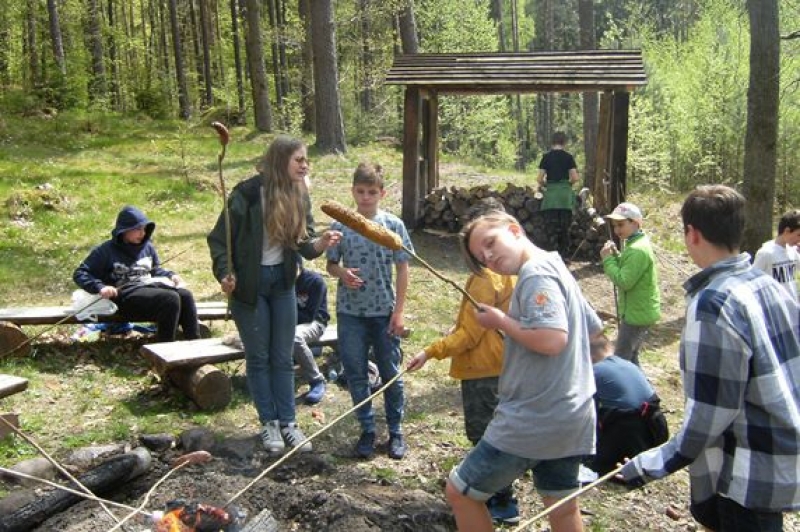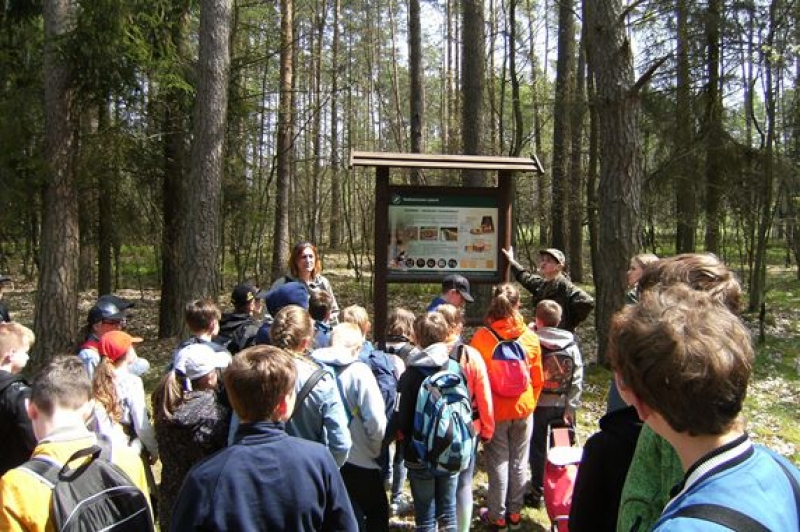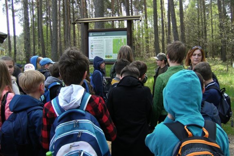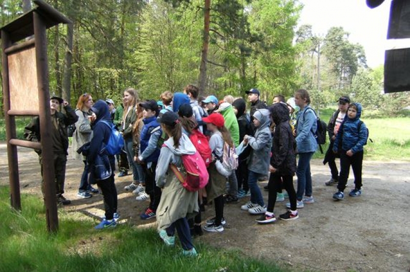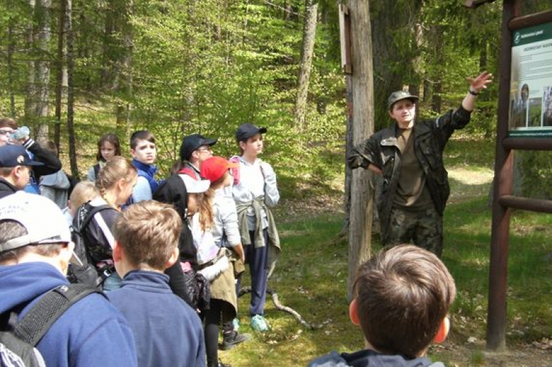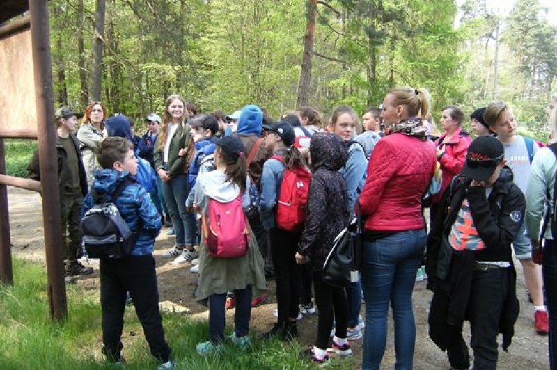 16 maja 2017 r. klasy IV – VI miały okazję zwiedzić ścieżkę edukacyjno – przyrodniczą w Leśnicach. Po malowniczo położonej trasie oprowadzała nas pani leśnik. Szereg tablic tematycznych i ciekawe informacje pani Zofii przybliżały nam wiele zjawisk zachodzących w lesie. Mieliśmy okazję poznać podstawowe typy siedliskowe występujące w lesie, gatunki drzew, krzewów i roślin zielnych. Mówiliśmy również o zwierzętach leśnych i nawet spotkaliśmy beznogą jaszczurkę czyli padalca. Pani leśnik wytłumaczyła nam co oznaczają znaki narysowane na drzewach. Widzieliśmy szkółkę leśną, w której rośnie młode pokolenie lasu. Naszą lekcje w terenie zakończyliśmy ogniskiem - oczywiście w specjalnie do tego przeznaczonym miejscu.