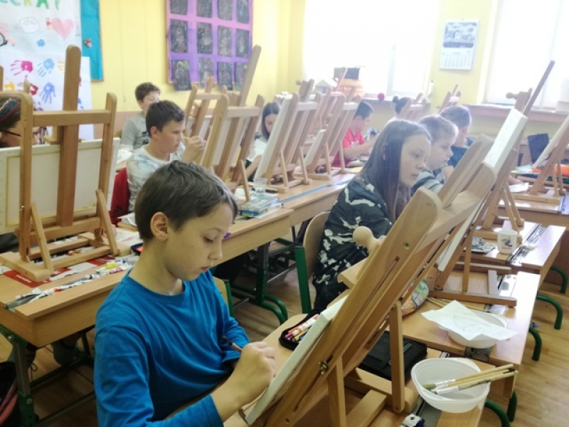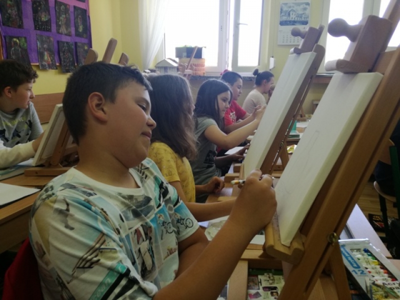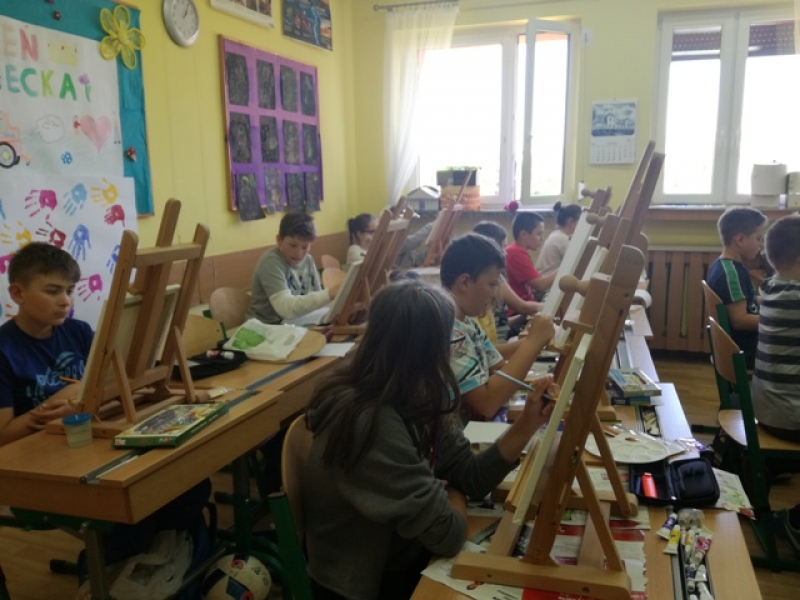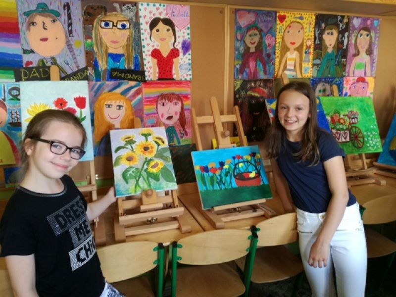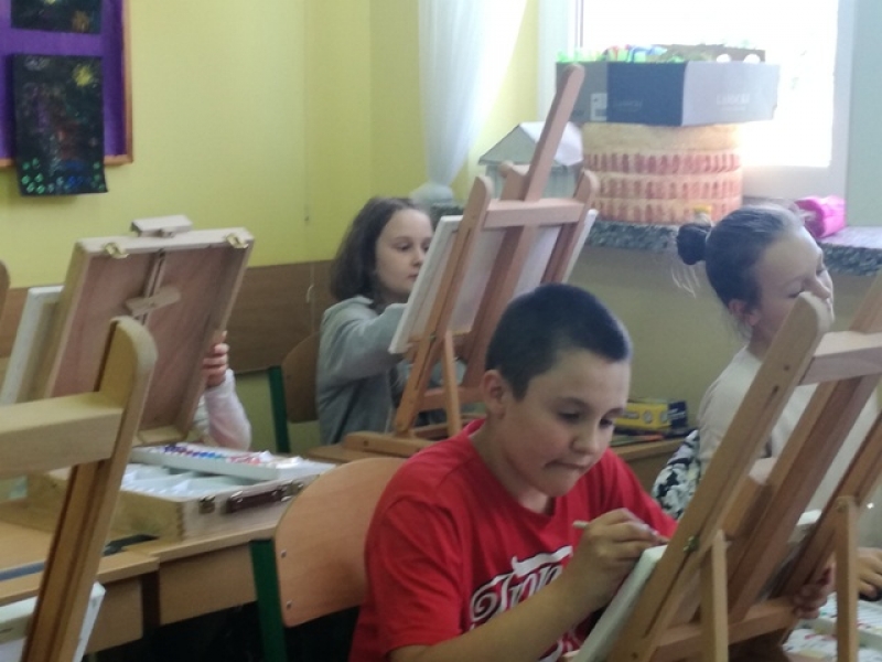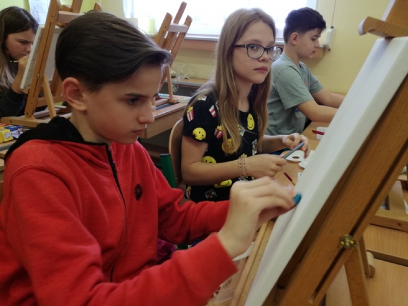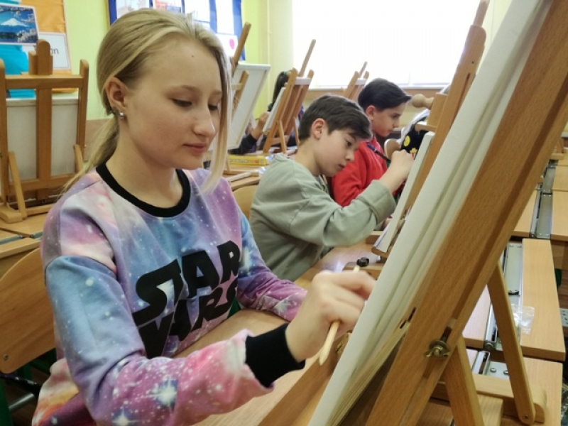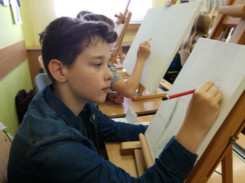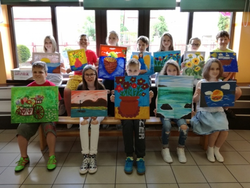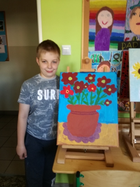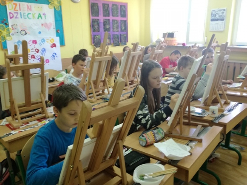 Uczniowie klas czwartych i piątych brali udział w projekcje i zarazem konkursie pod hasłem ,,Artysta Roku. Prace plastyczne uczniowie klas starszych wykonywali przez 3 godziny lekcyjne. Interesująca dla uczniów była technika malarska na płótnie. Obrazy powstawały inspirowane przede wszystkim tematyką marynistyczną i florystyczną. Zadanie plastyczne było emocjonujące dla uczniów ze względu na podjęcie wyzwania stania się artystą malarzem i zarazem wykonania dzieła dla szczytnego celu. Dzieci wspaniałomyślnie zdecydowały, że prace przekażą na cel charytatywny - aukcję Bożonarodzeniową na rzecz chorych dzieci. Za wielkie, pełne współczucia i gorące serce dziękujemy! Rodzicom natomiast gratulujemy wychowania wspaniałych młodych ludzi, rozumiejących potrzeby osób chorych, cierpiących, wymagających wsparcia i pomocy.